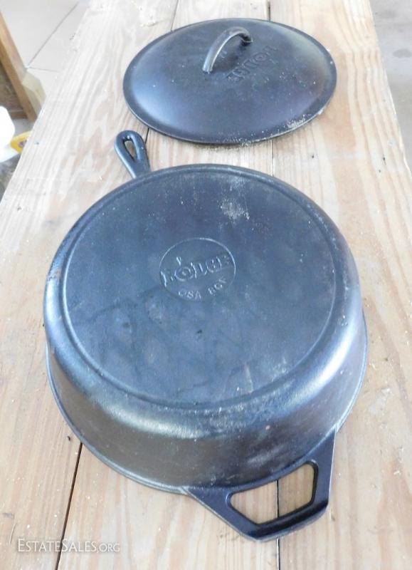 Lodge Deep Pan with Lid in very good condition. Has fire ring. Needs some cleaning and seasoning.