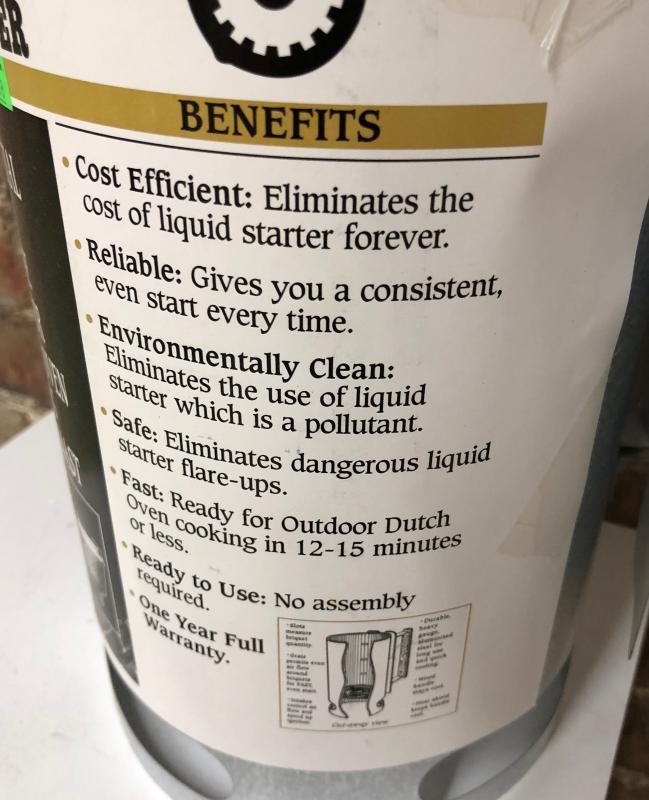 Essential for the outdoor cook here is a Lodge Gear Dutch Oven Charcoal Starter in new condition with tags...