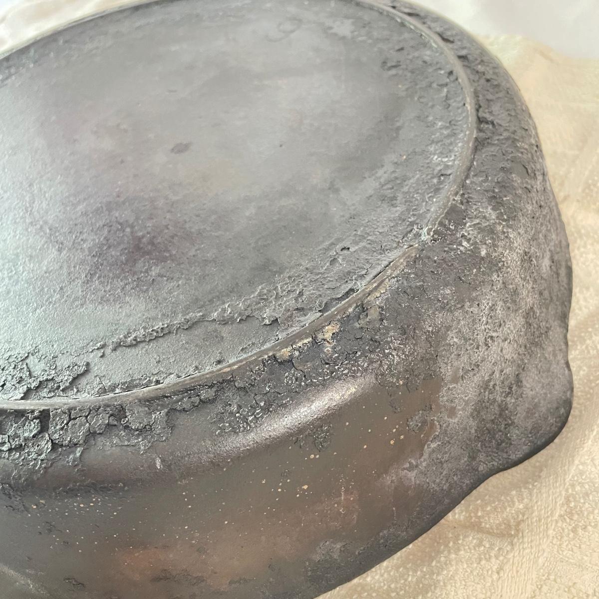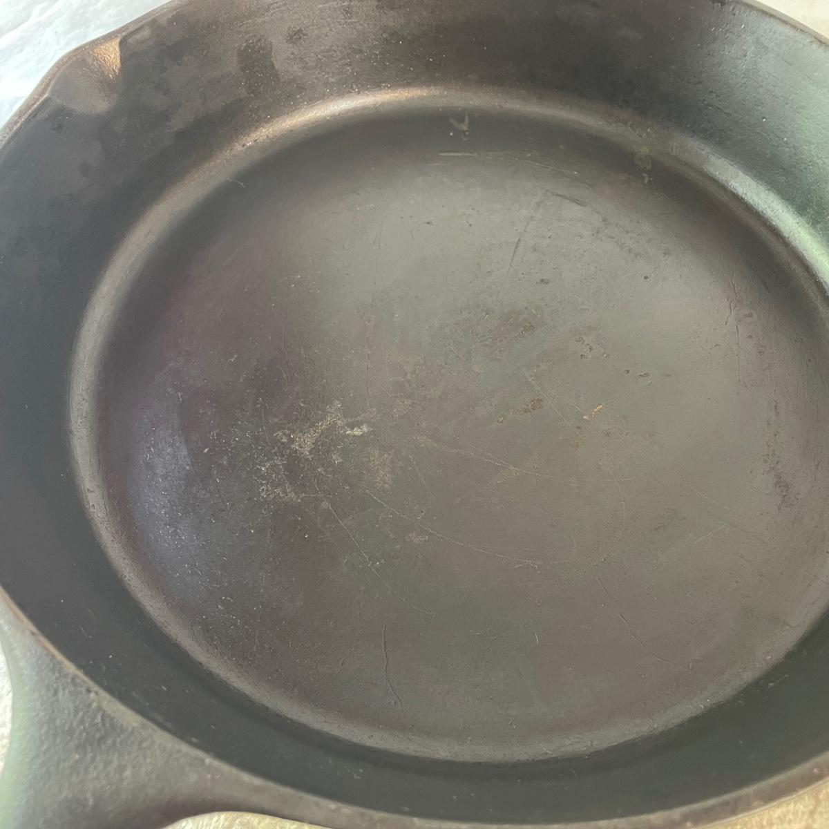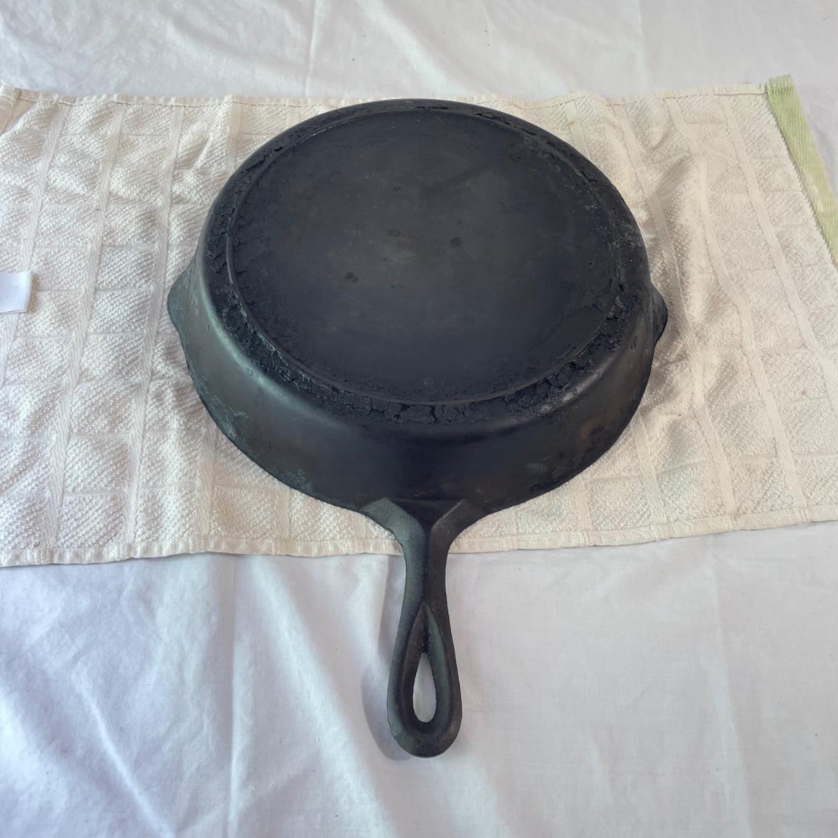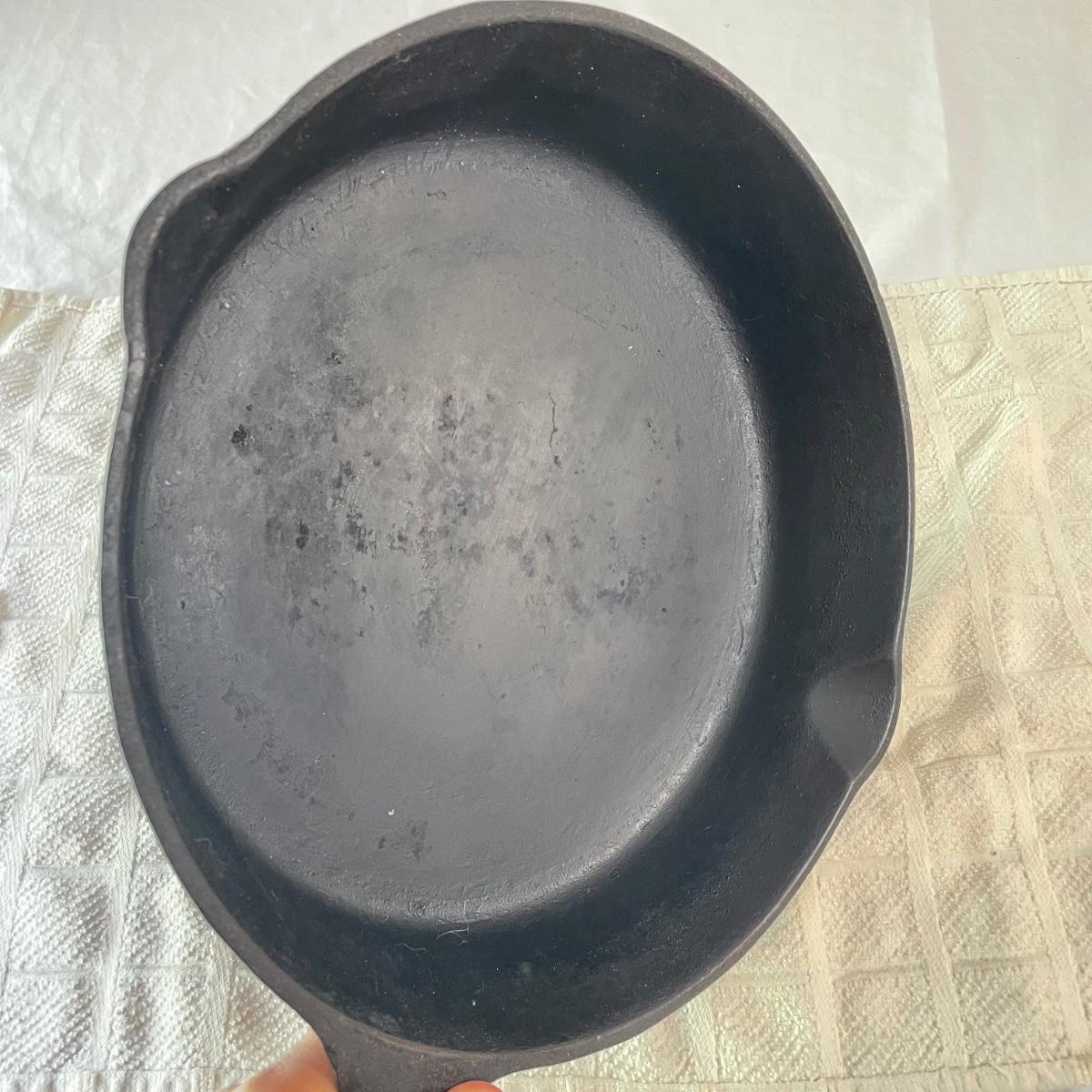 Cast iron cookware. Two burner Lodge Pro Grid Iron Griddle is reversible and measures 20” x 10.5”. Lot also contains five cast iron skillets ranging from 7”D to 12”D, two Le Creuset pan holders and a Lodge grill press. Largest pan has a decent amount of burnt residue. See images. Local pick up only.