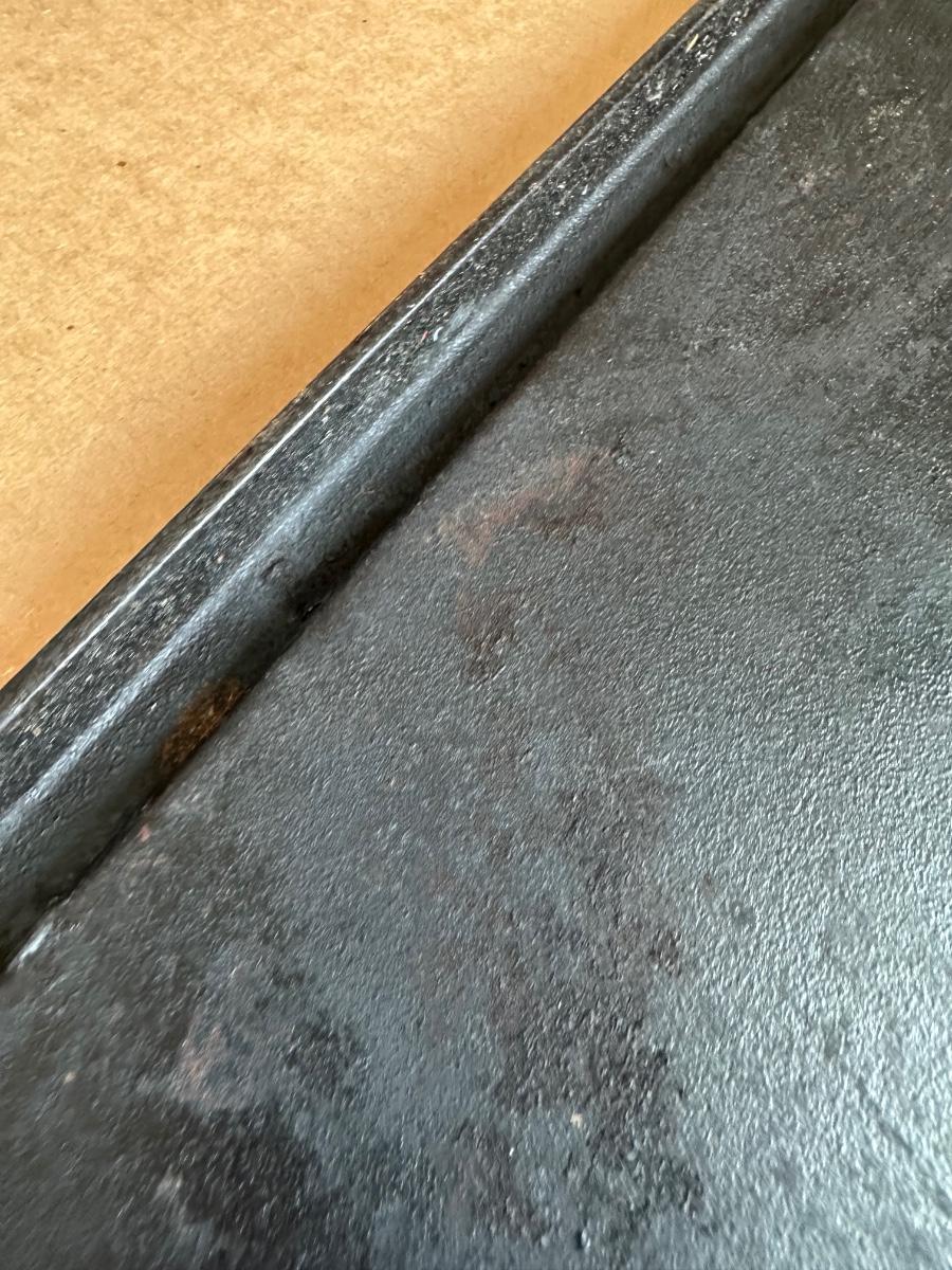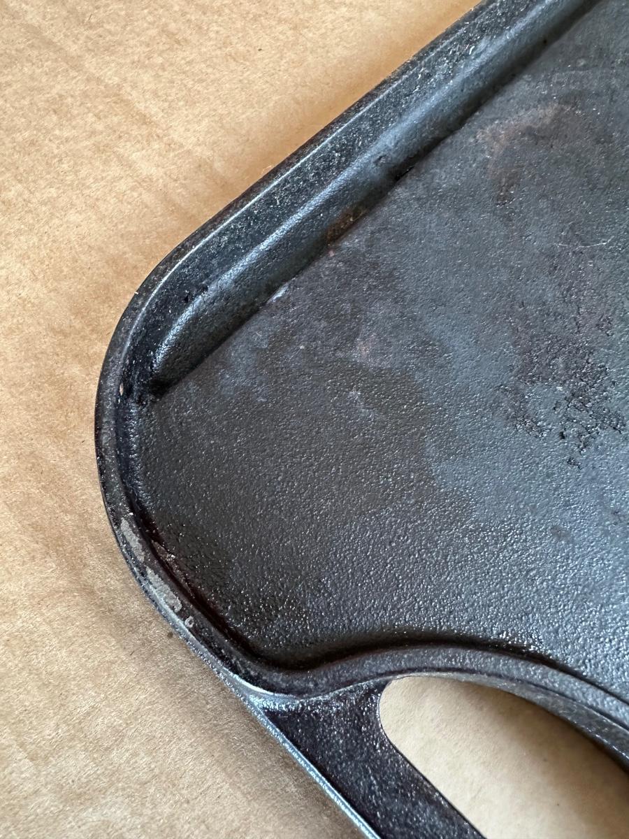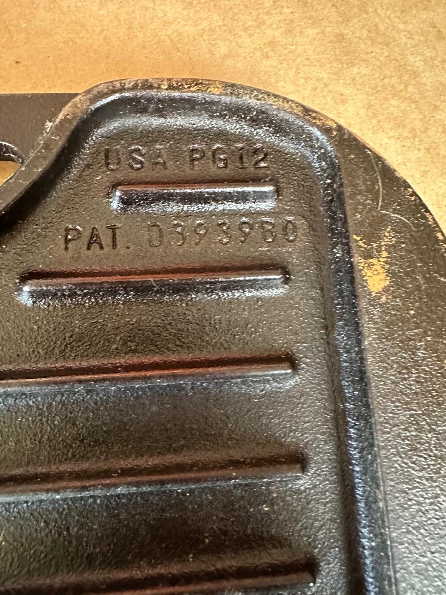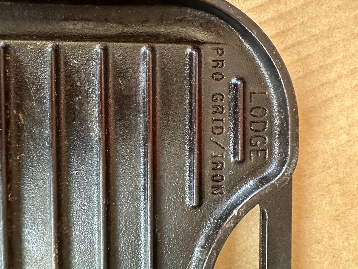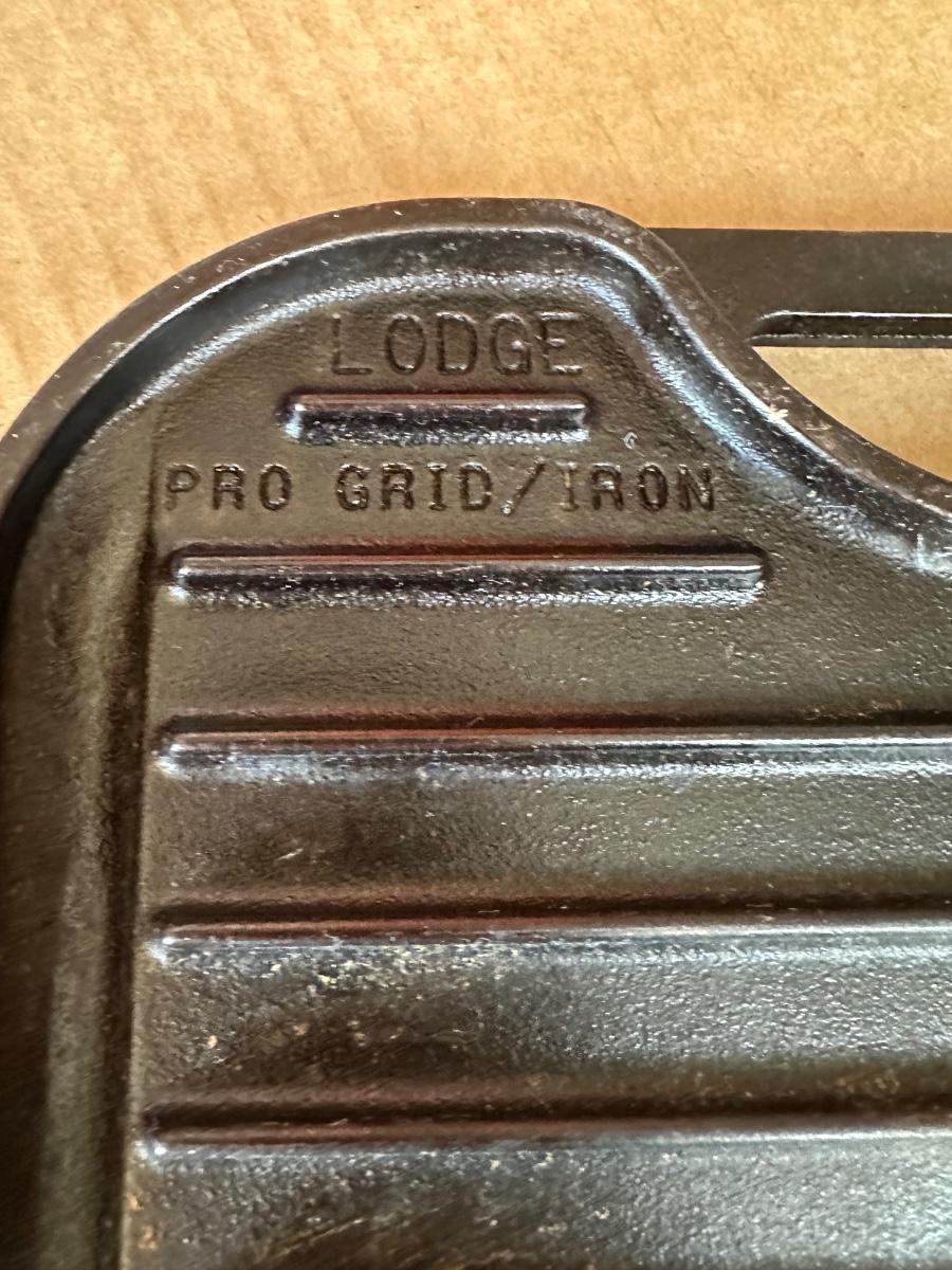 Marked “LODGE PRO GRID/IRON”, “USA P6 12”, and patent D373980.