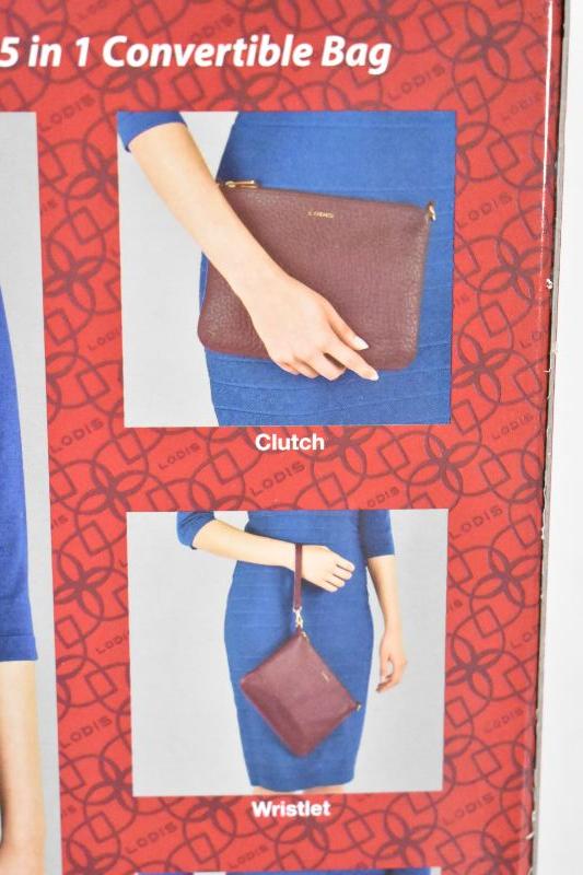 Lodis Italian Leather Purse: 5 in 1 Convertible Bag, Maroon/Dark Pink - New