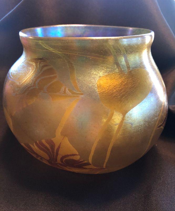 Beautiful antique iridescent Loetz vase/bowl with internal crack. Displays beautifully!