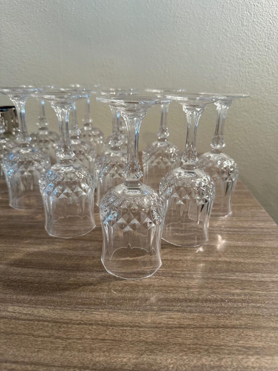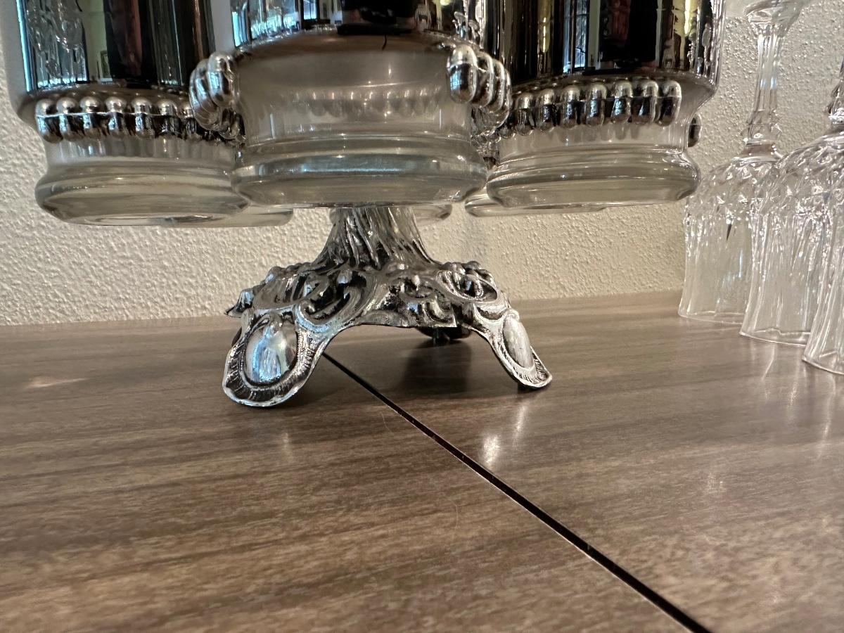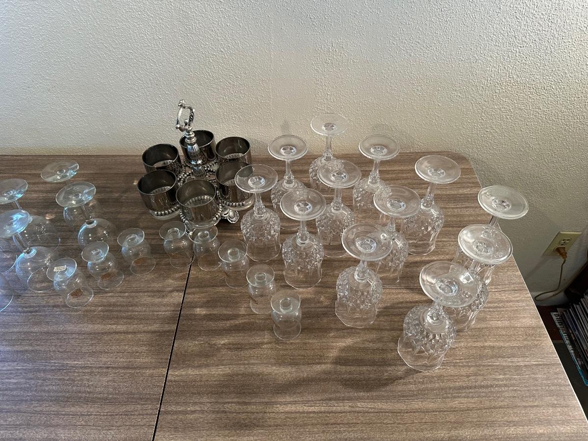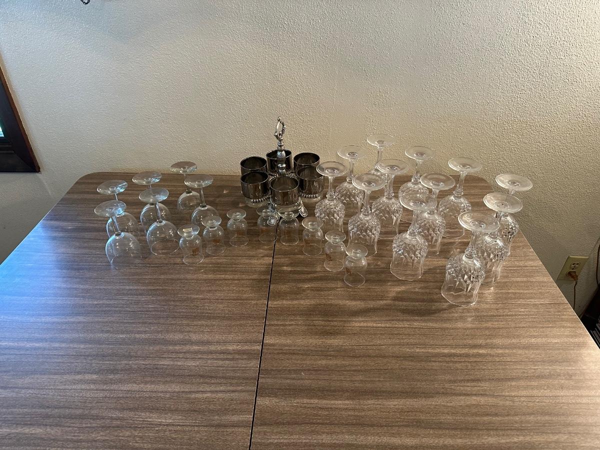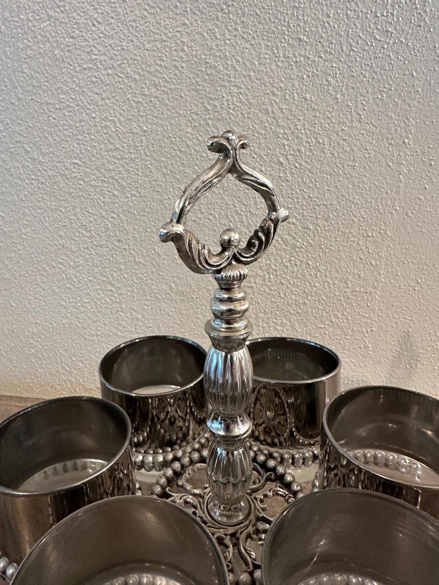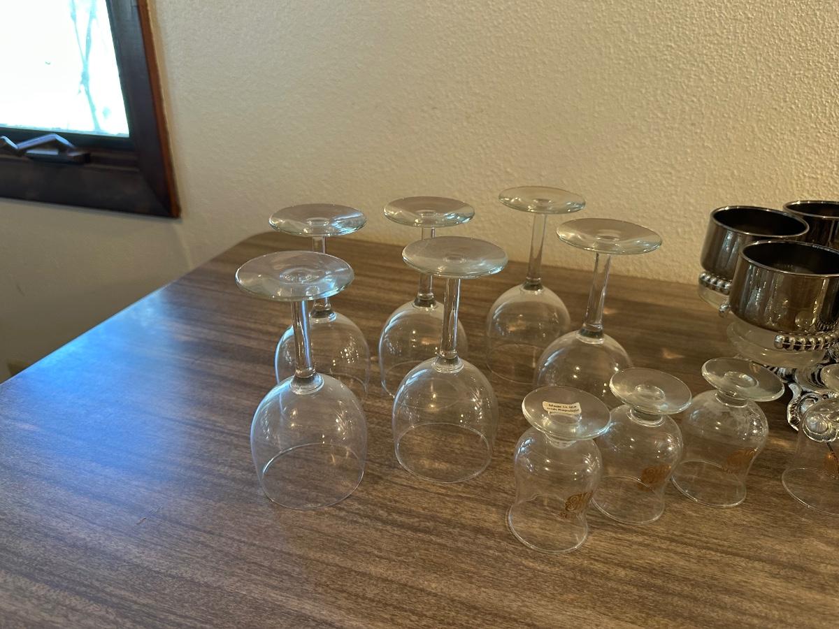 LOEVSKY & LOEVSKY BAR SET W/WIDE SILVER BAND AND STEMMED GLASSES