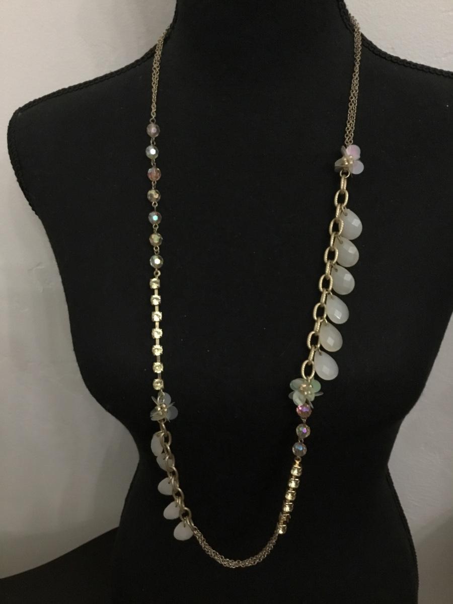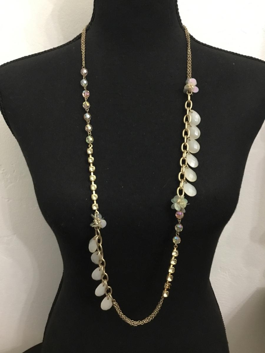 Loft, satin, gold tone, translucent, crystal flower, bead statement, necklace