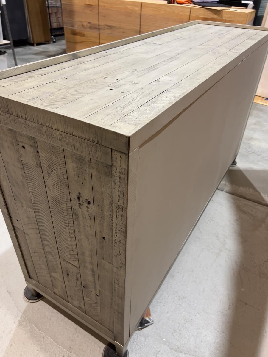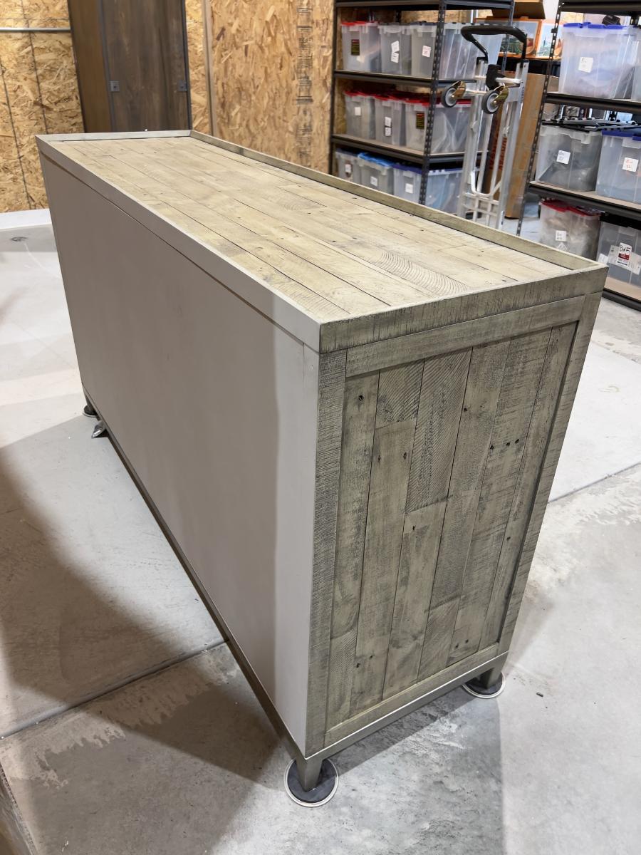 Not used Excellent Condition. Jointed Corners. Wood with Metal Legs. High quality! Please provider moving assistance and secure transportation and or packing materials for moving. Measures 64 x 19x 36. Retail Price $1,900.