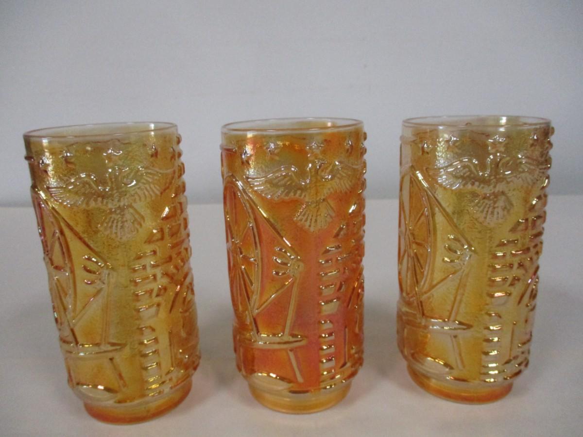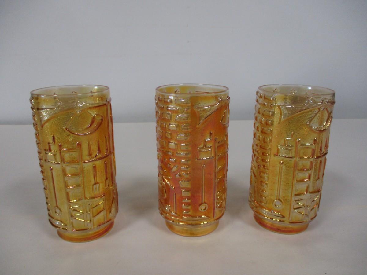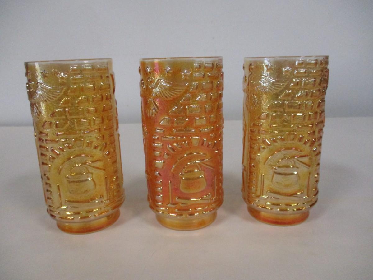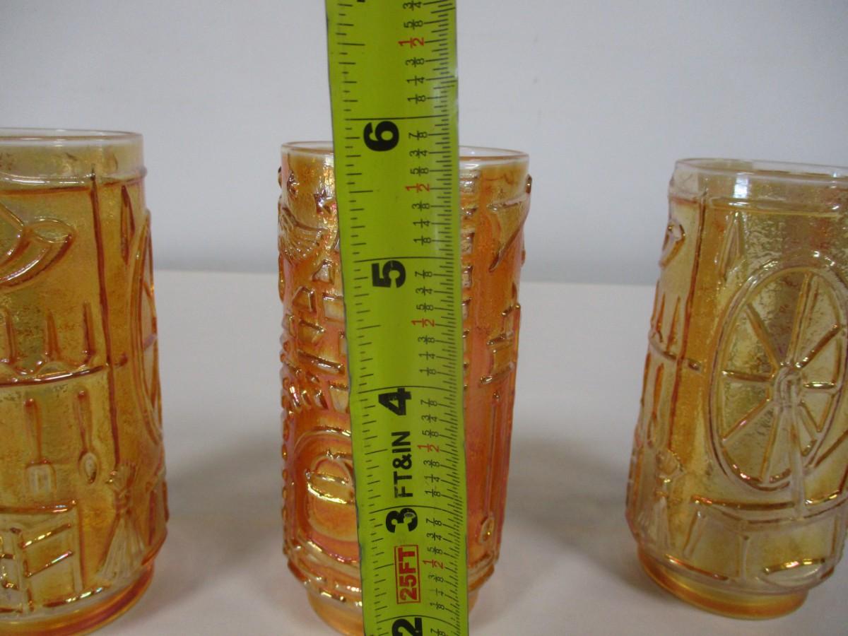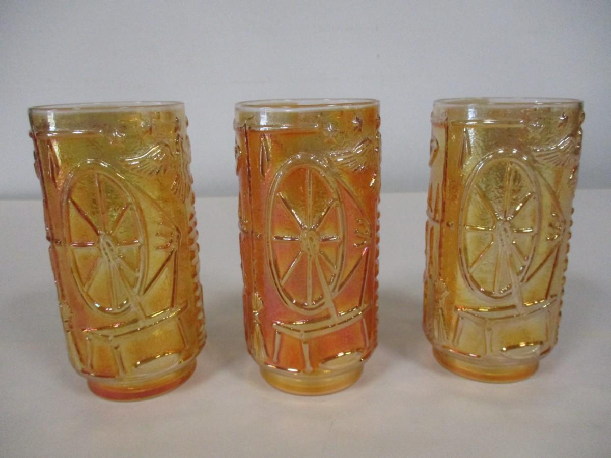 Log Cabin Fireplace Setting Glasses With Spinning Wheel