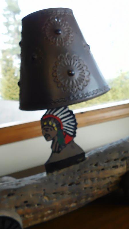 Log Ride Native American Bust Lamp with DEcorative Tin Punch Out Shade 16"x17"