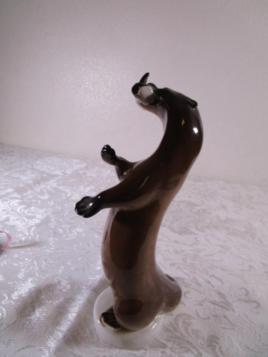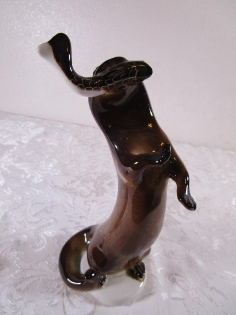 Lomonosov Imperial Porcelain otter standing with fish figurine