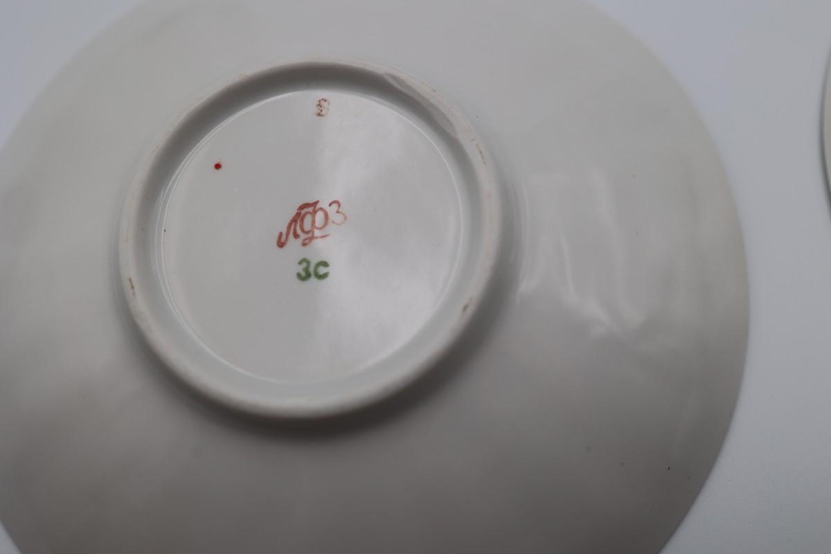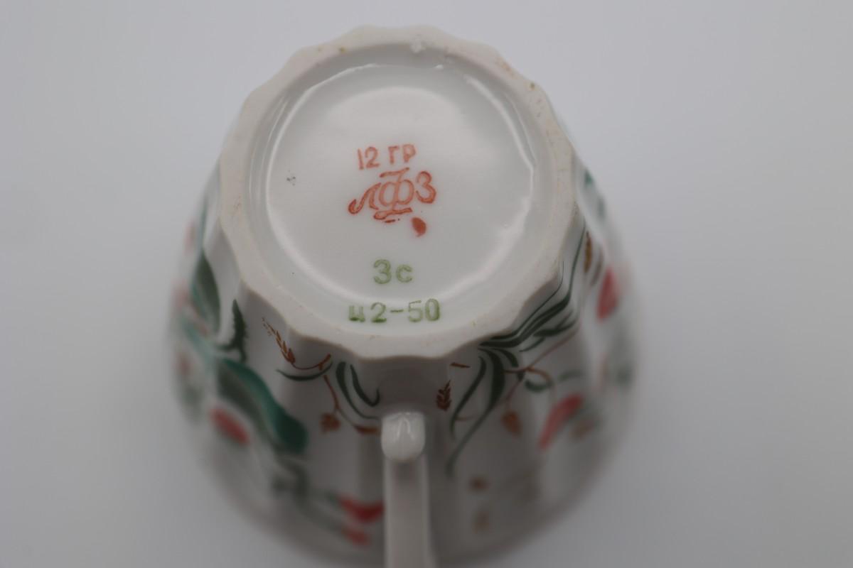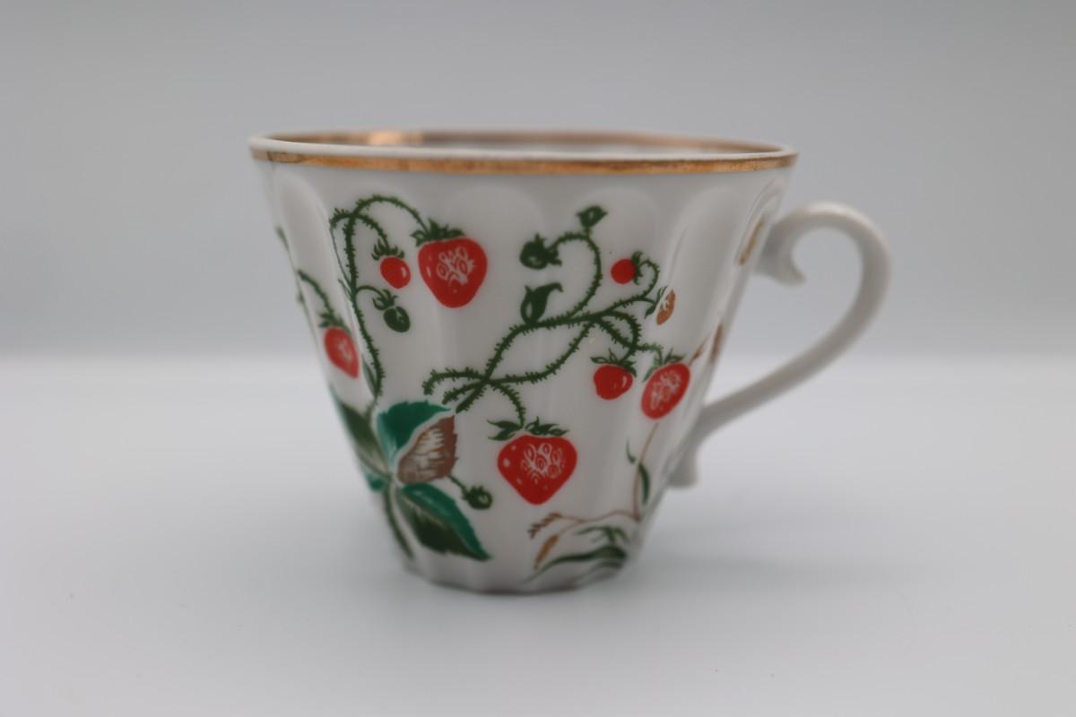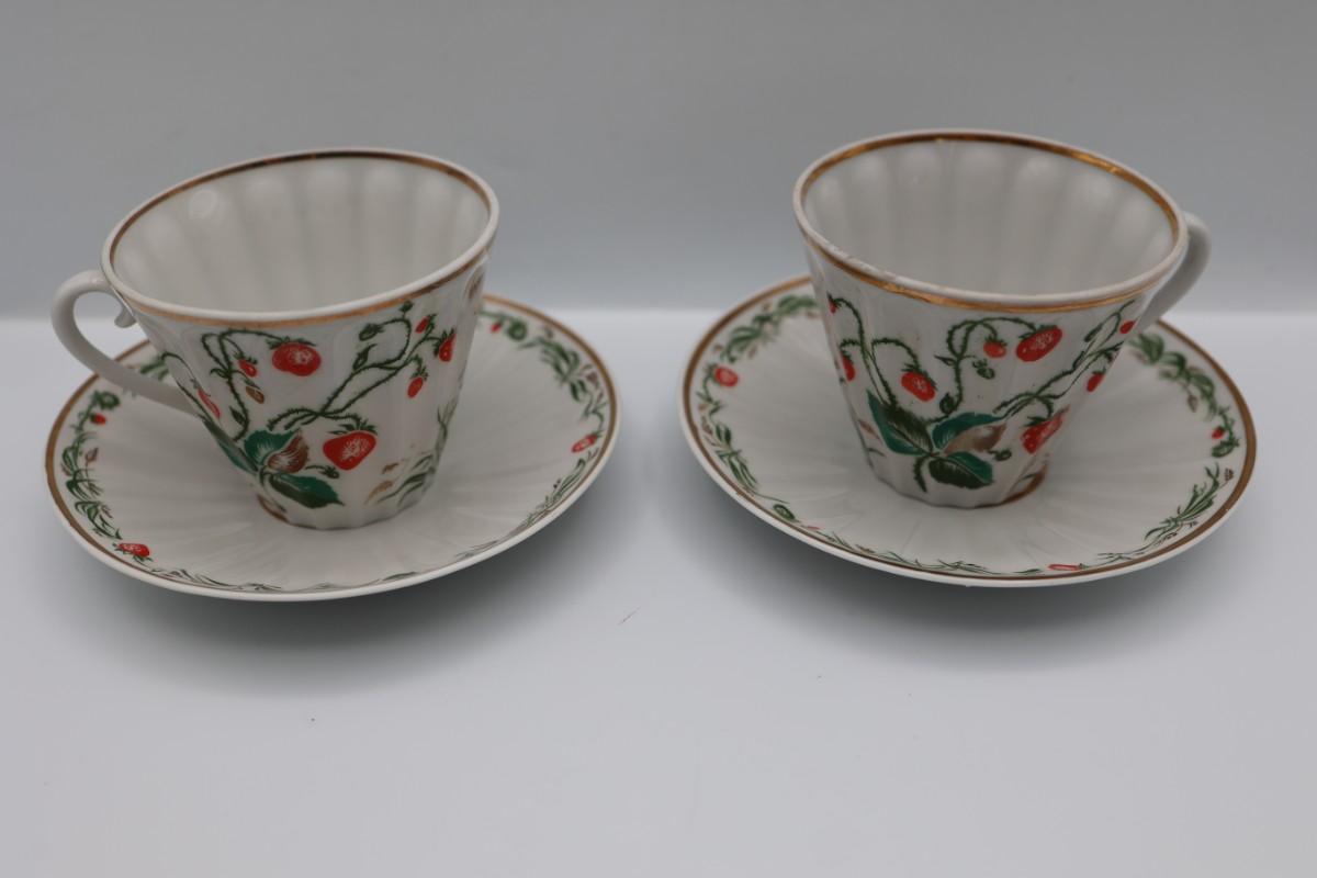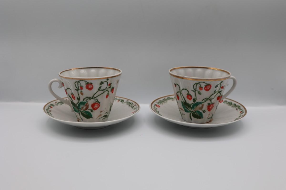 LOMONOSOV Porcelain Strawberry Pattern Teacups And Saucers
