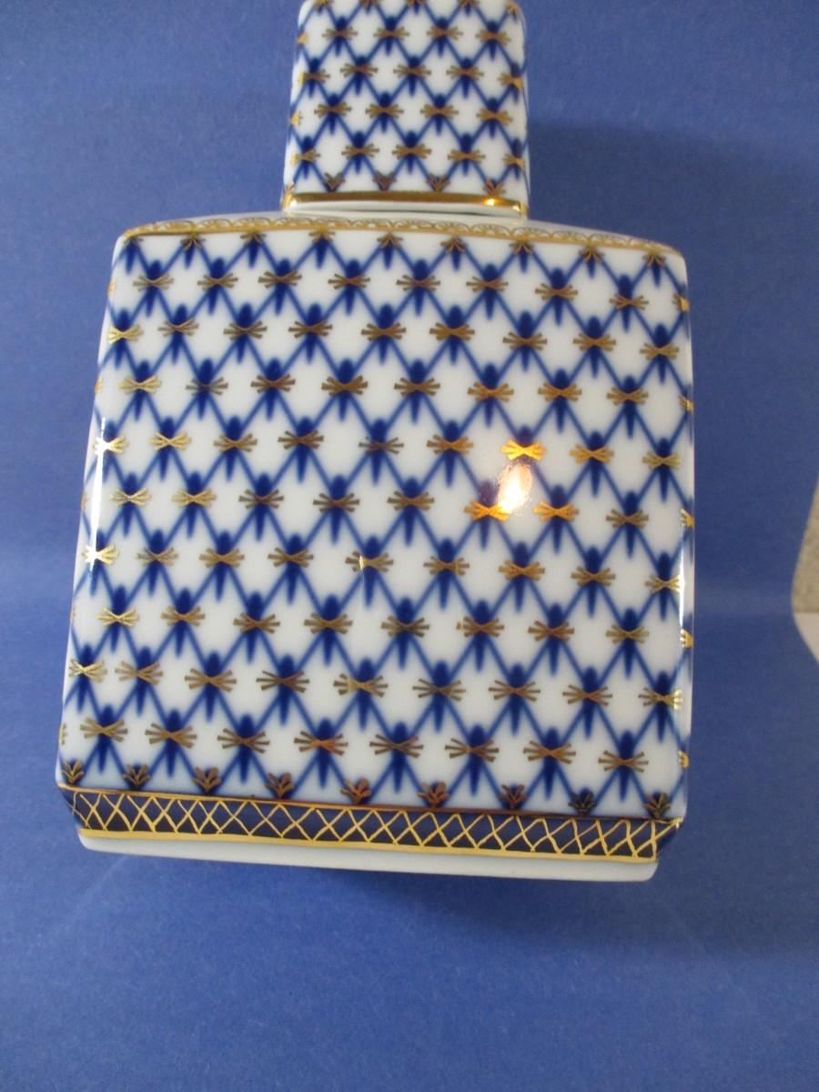 Lomonosov Russia Decanter 7-8" tall Cobalt Blue 22KT Gold Trim St Petersburg ( Bone China ) Rare