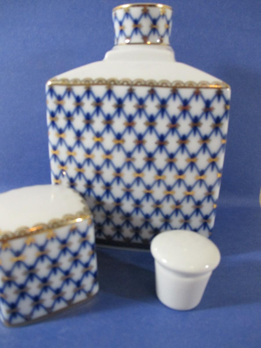 Lomonosov Russia Decanter 7-8" tall Cobalt Blue 22KT Gold Trim St Petersburg ( Bone China )