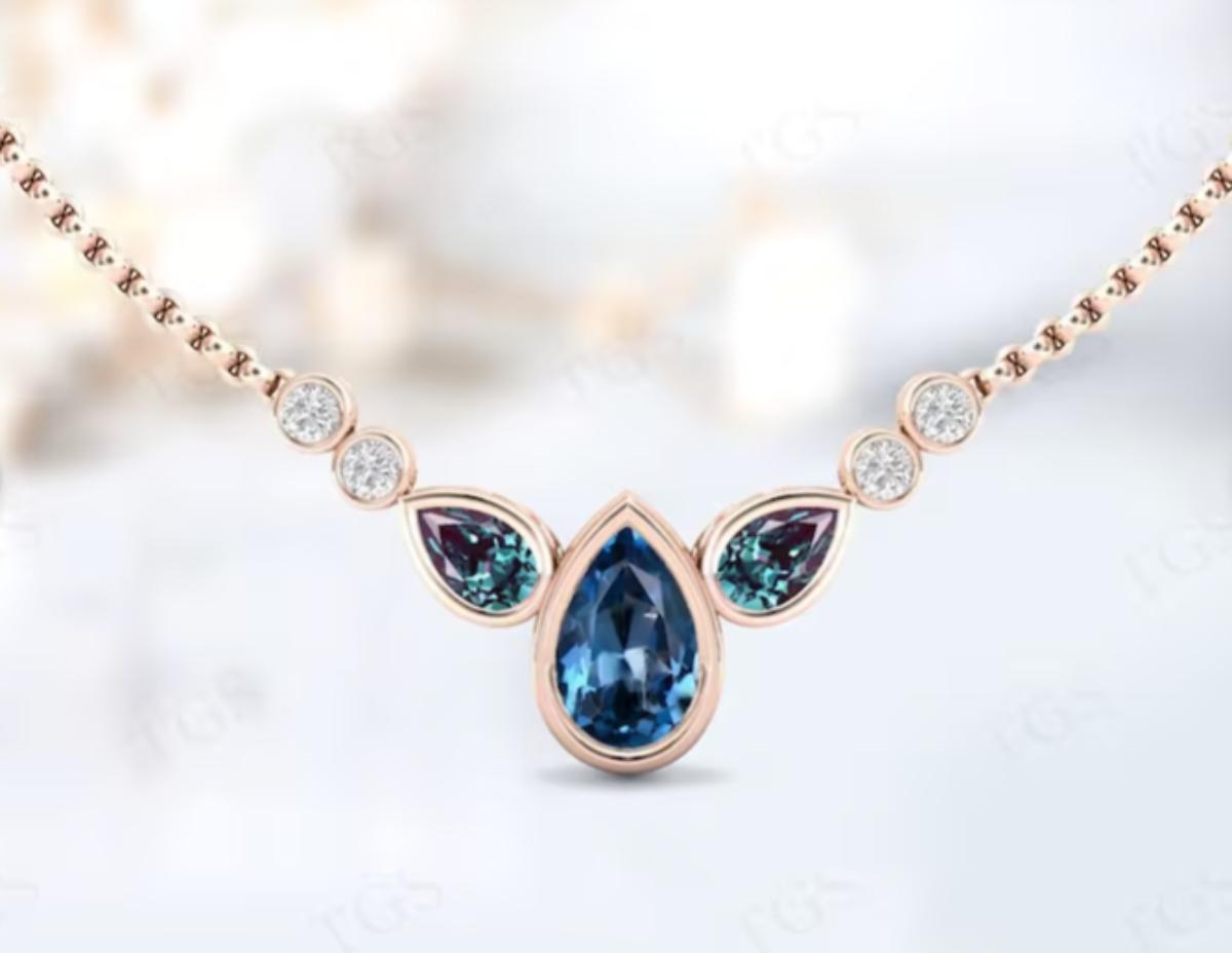 London Blue Topaz Pear Shape Necklace Rose Gold