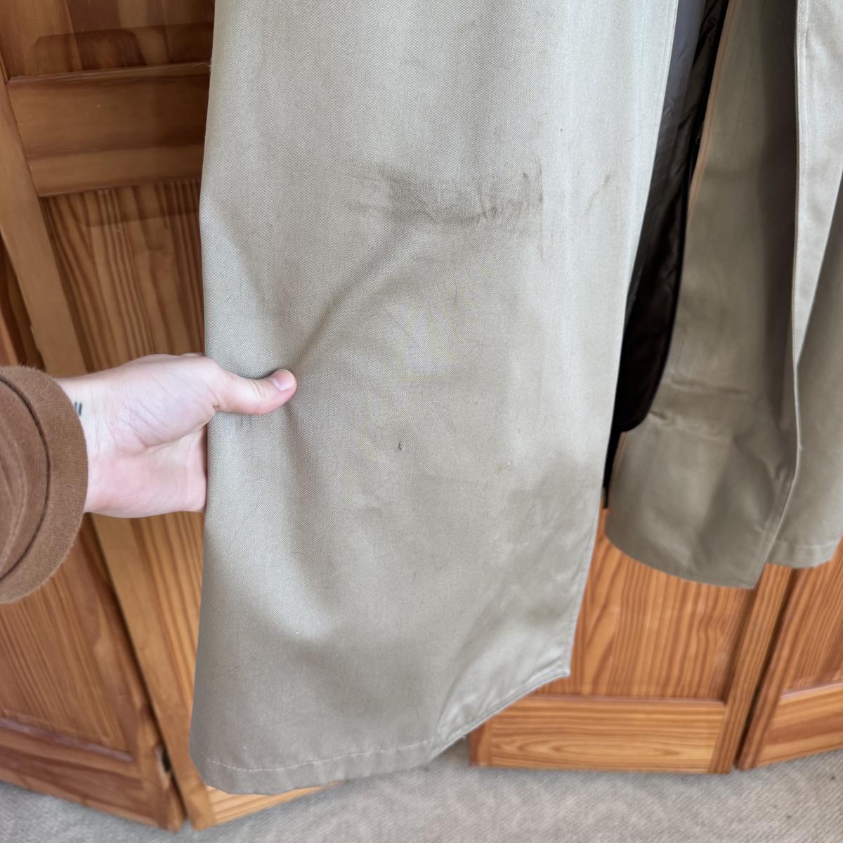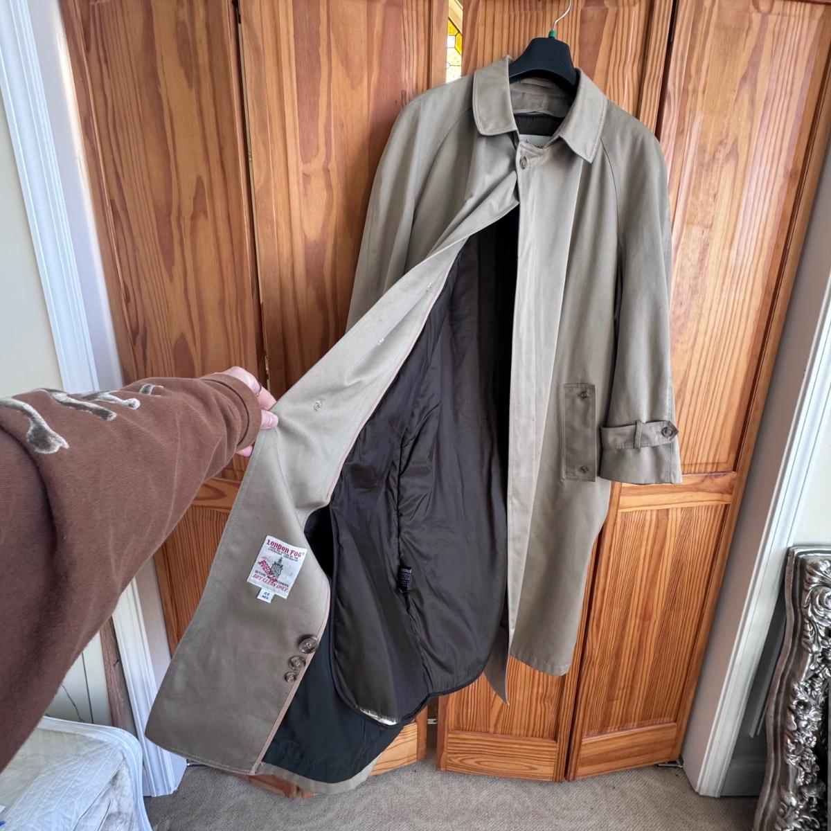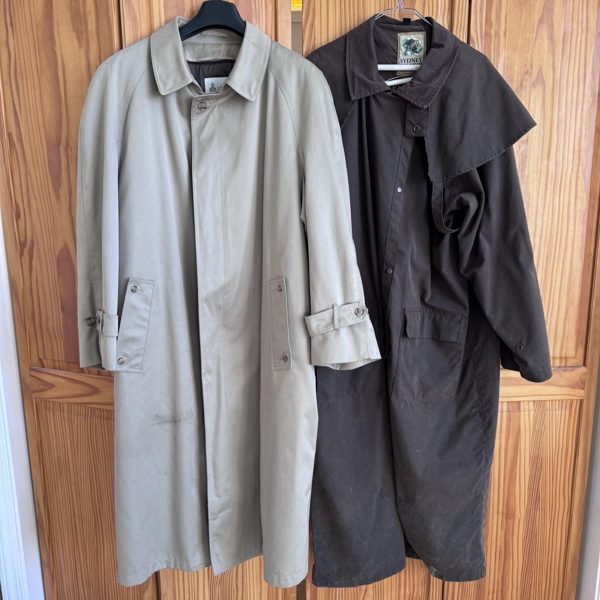 This lot includes two trench coats - one from London Fog and the other Sydney Oilskin. Both coats are a men’s size 46. The Sydney Oilskin coat has a bit of a musty smell. The London Fog coat has a liner that can be unzipped and removed. Note that it is stamped Irregular. WEre not able to see what was wrong. Shipping available.