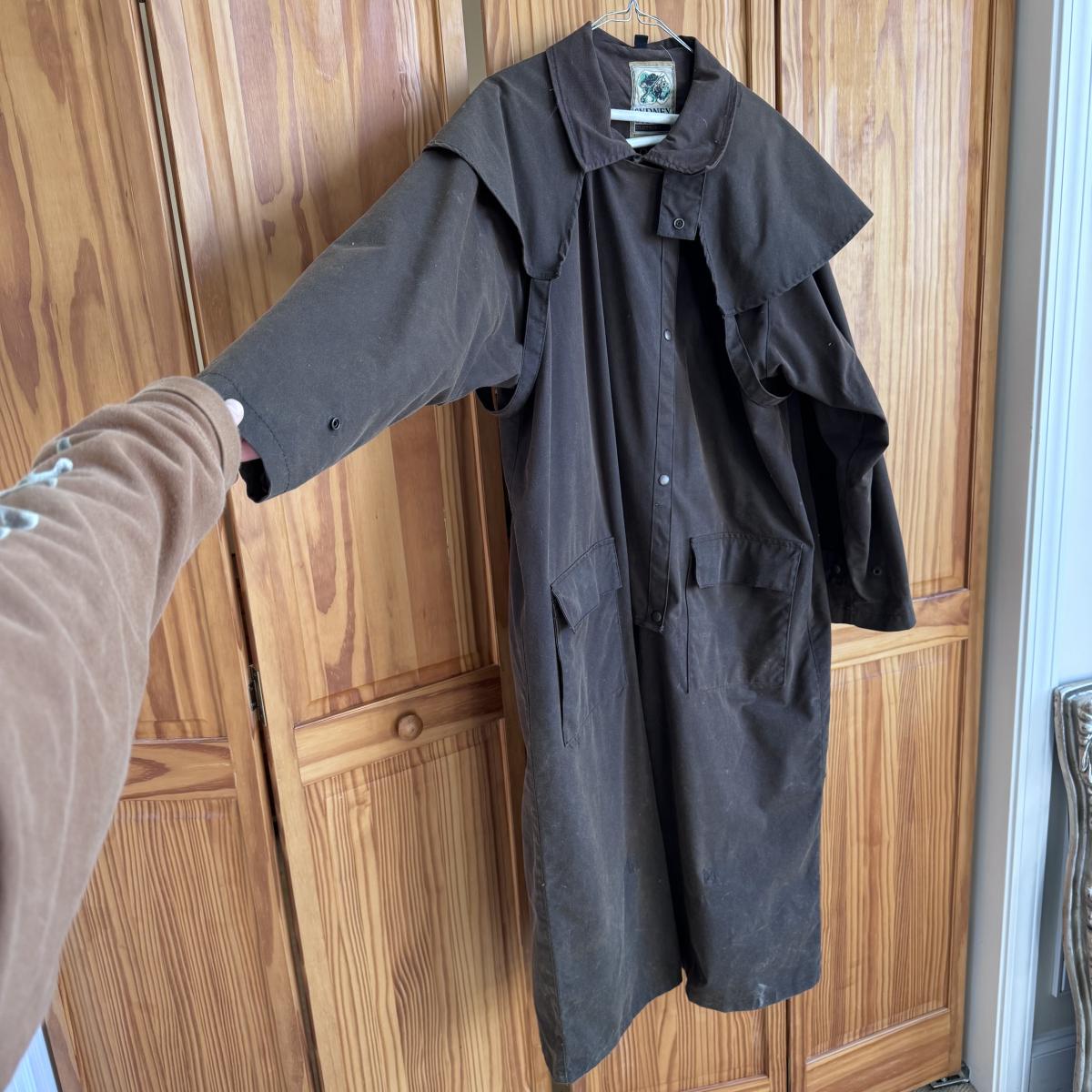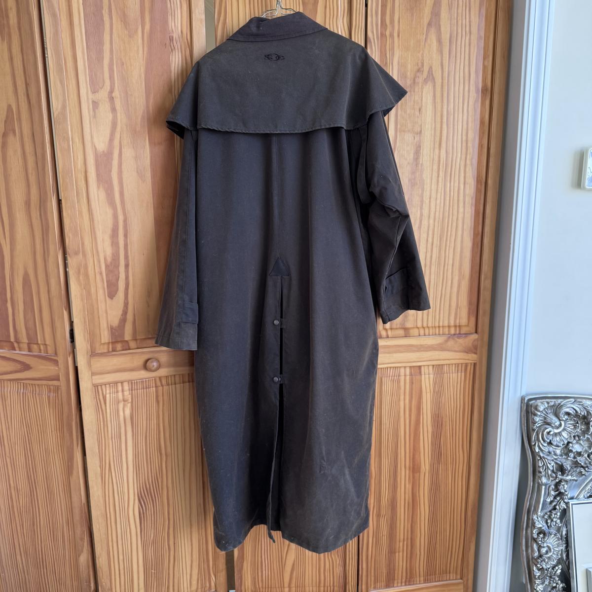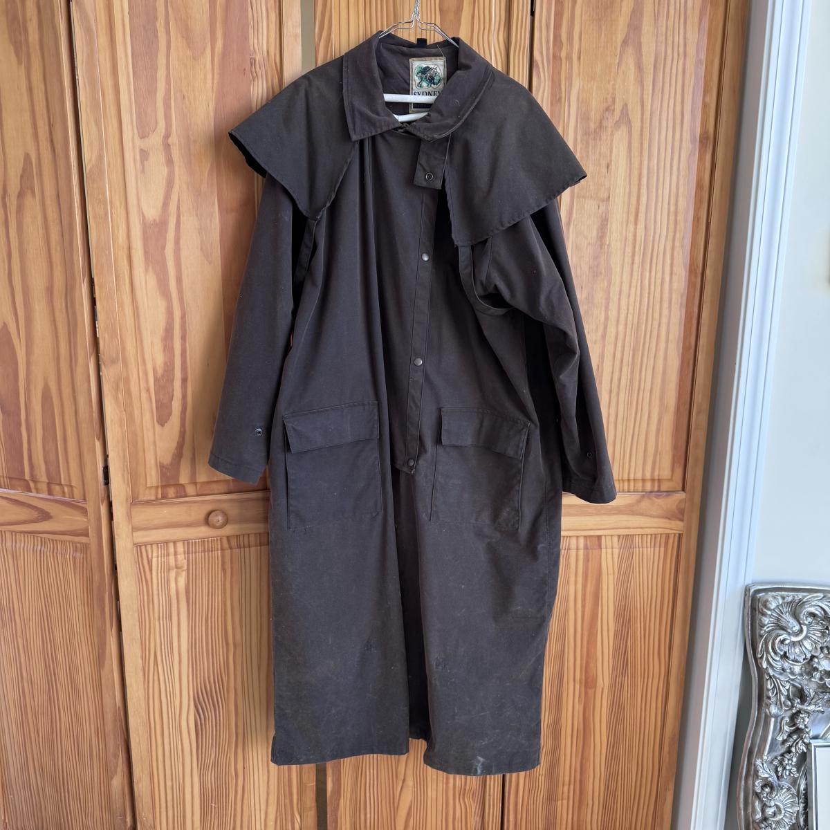 This lot includes two trench coats - one from London Fog and the other Sydney Oilskin. Both coats are a men’s size 46. The Sydney Oilskin coat has a bit of a musty smell. The London Fog coat has a liner that can be unzipped and removed. Note that it is stamped Irregular. WEre not able to see what was wrong. Shipping available.