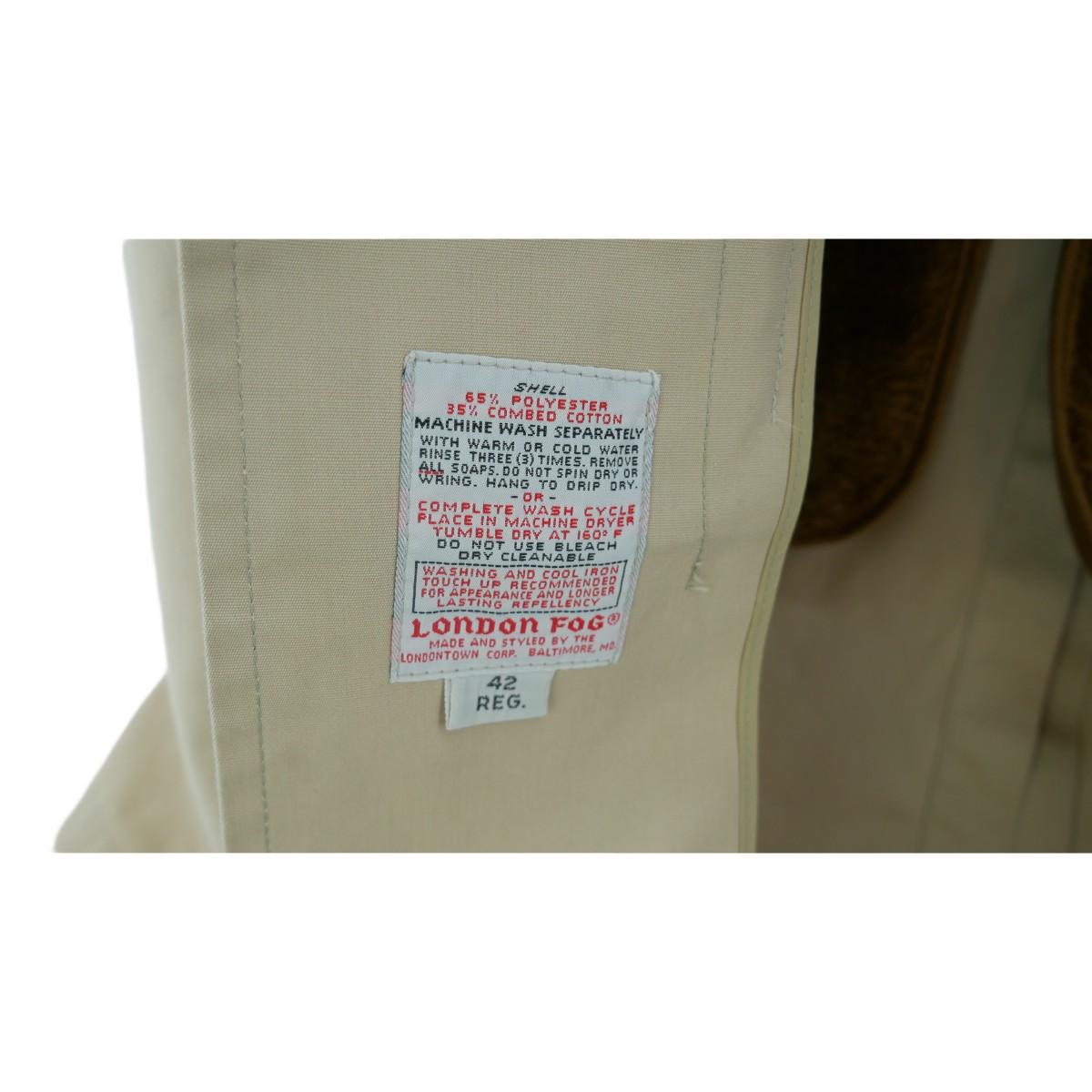 Beautifully made London Fog Maincoats trench coat in size 42 regular. Has detachable inner lining for easy washing. Brand is Londontown Corporation, Baltimore Maryland. Very well made and heavy duty coat. A few small scuffs and light markings. In good condition! Weighs 4 lbs. (F35)