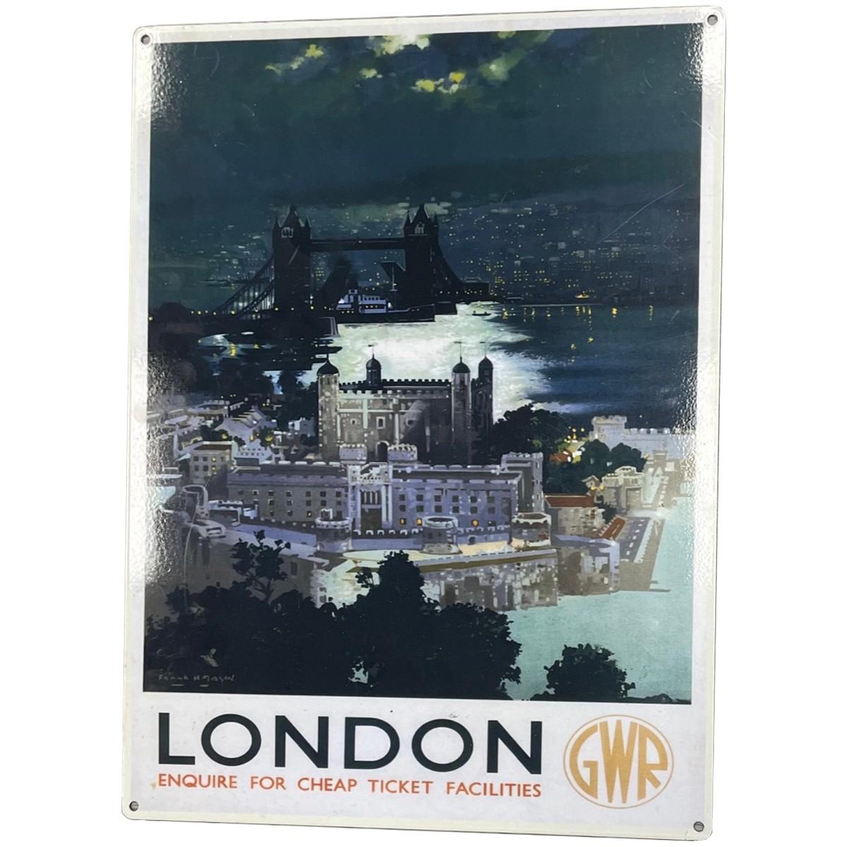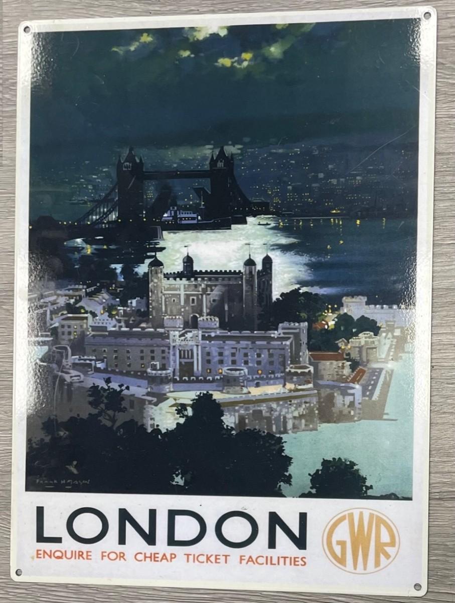 Description: London GWR advertising Sign. Measures approximately: 16 X 11.5 Inches. Material : Metal.