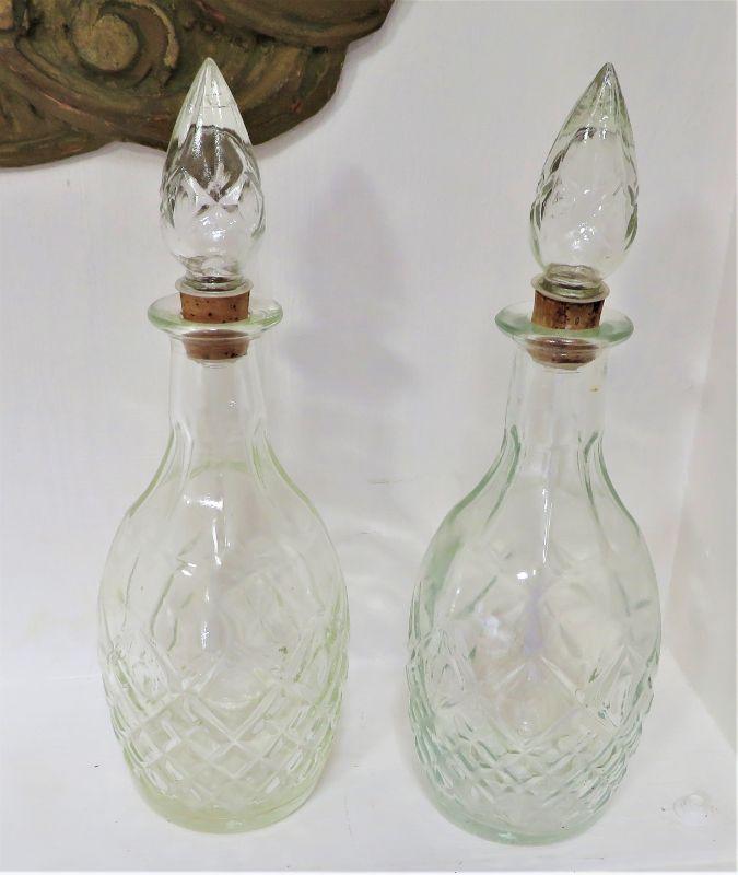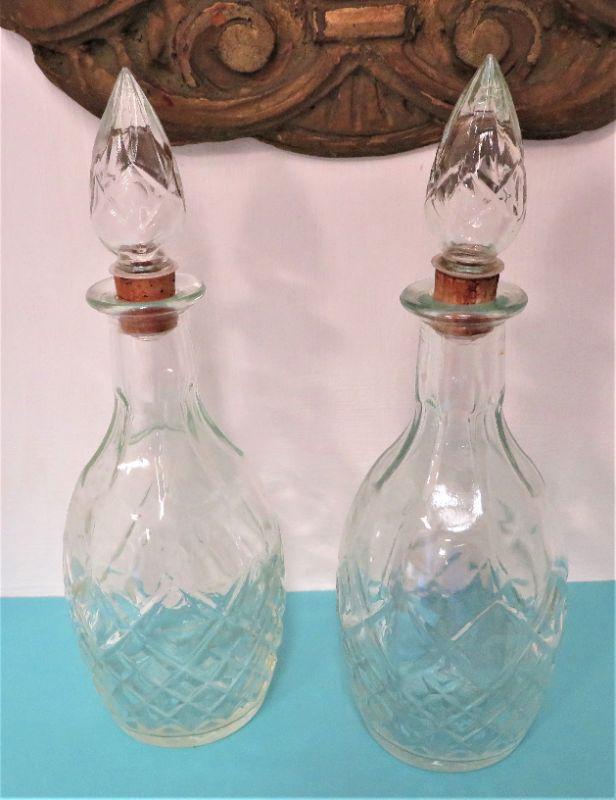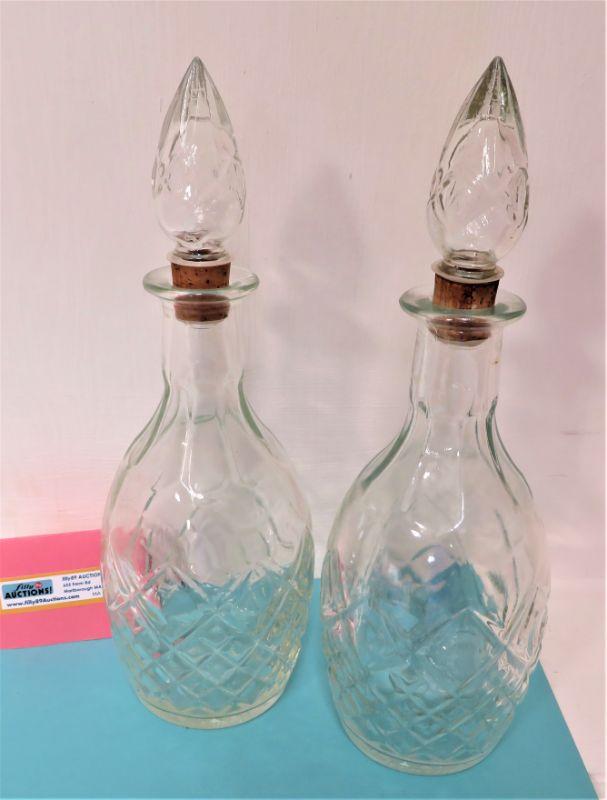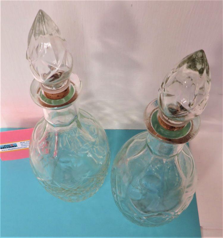 Set of 2 1967 Vintage London Winery Limited Liquor Clear Glass Decanters complete with Cork Stoppers. Measures 11.5" tall x 4". marked London Winery Limited Rd 1967 London Ontario Canada. In Good Condition for its age.