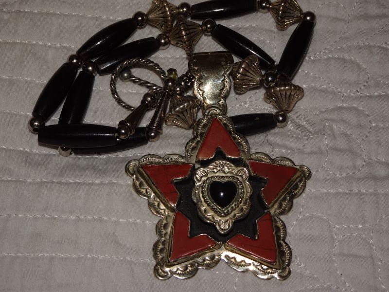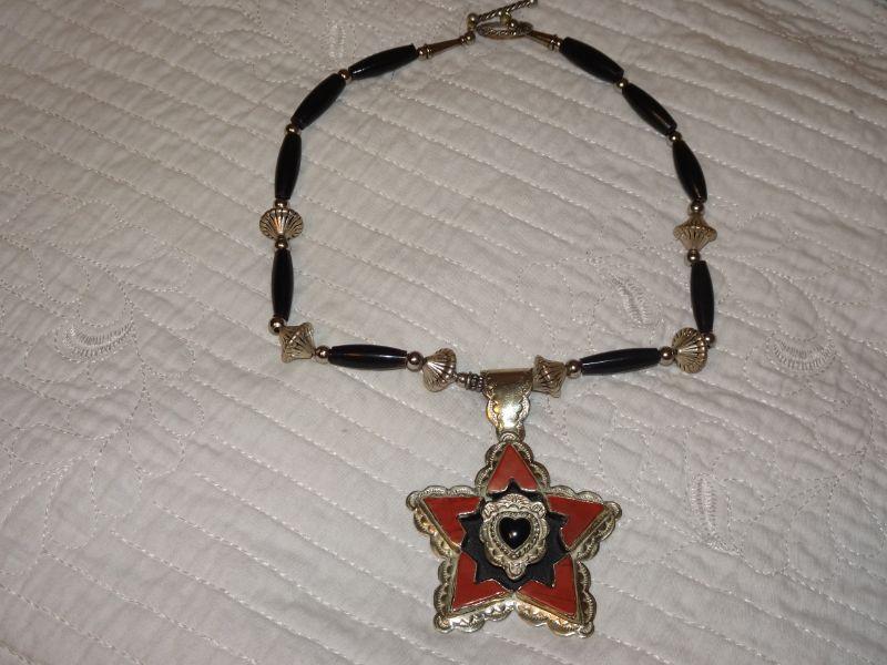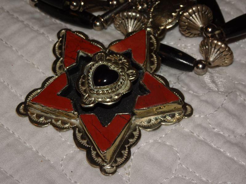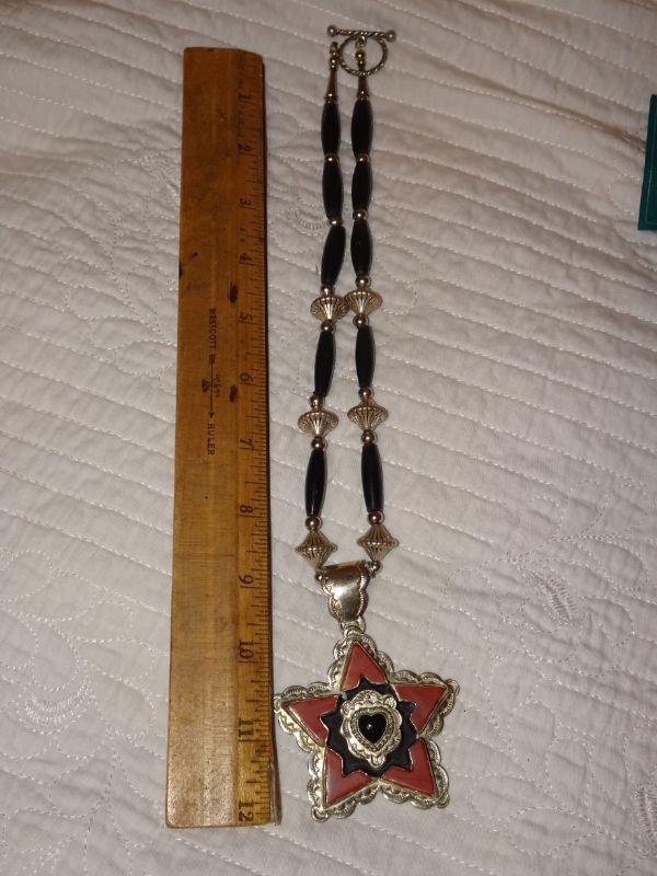 Lone Star Texas Pendant, Stock Show Jewelry, Silver Tone, Red Accents
