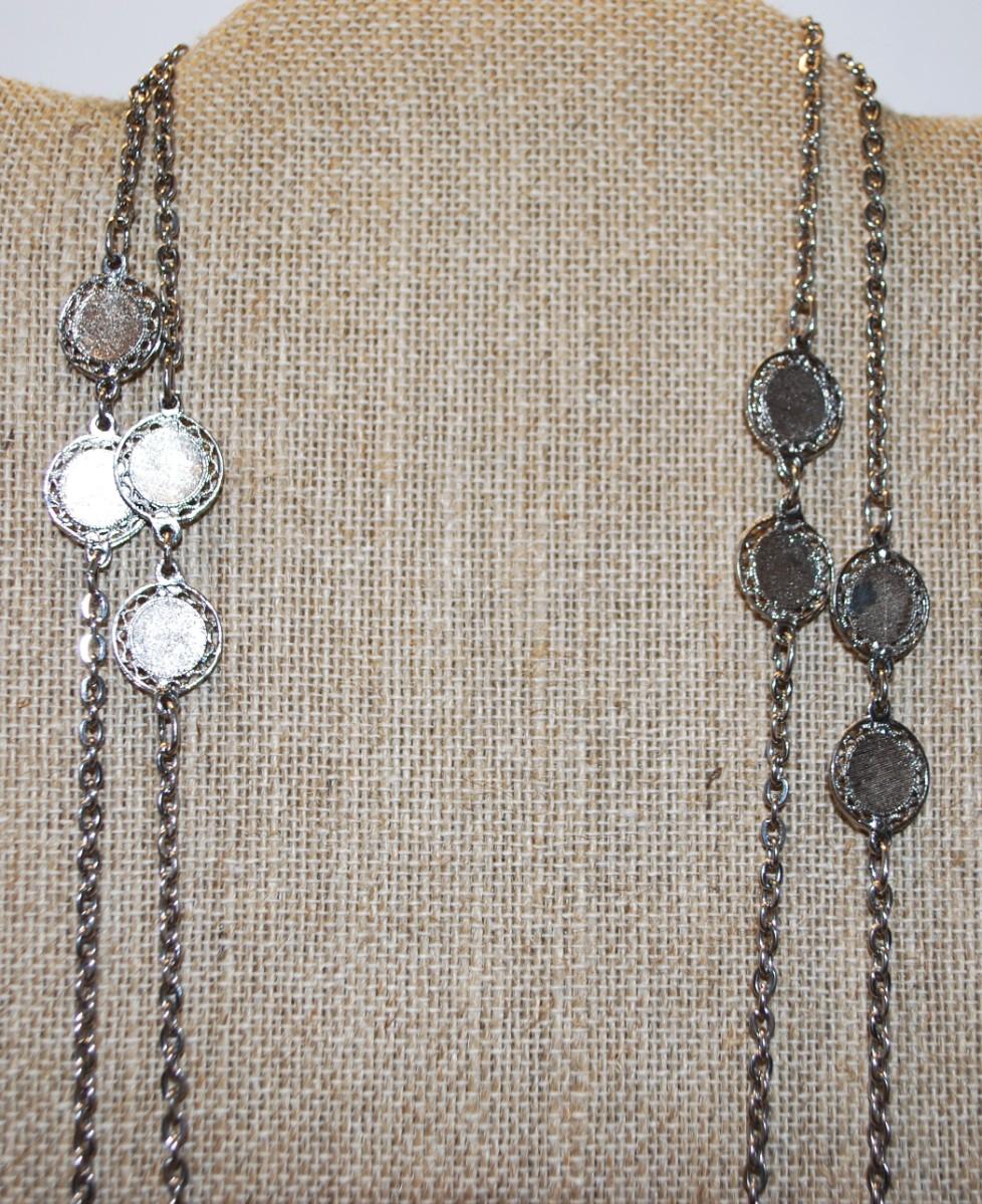 Long 50" Wrap-Around Necklace with Silver Tone Hammered Discs & Chain