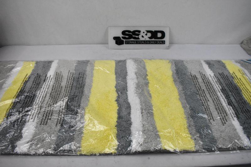 Long Bathroom Rug, 60" x 21" Yellow/Gray/White Stripes Microfiber - New