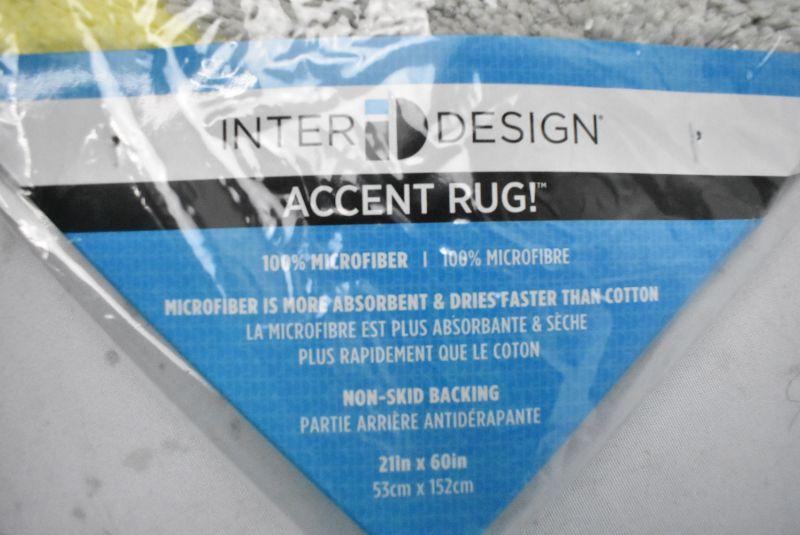 Long Bathroom Rug, 60" x 21" Yellow/Gray/White Stripes by InterDesign Microfiber - New