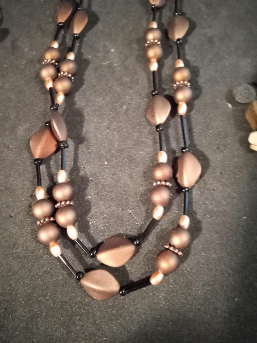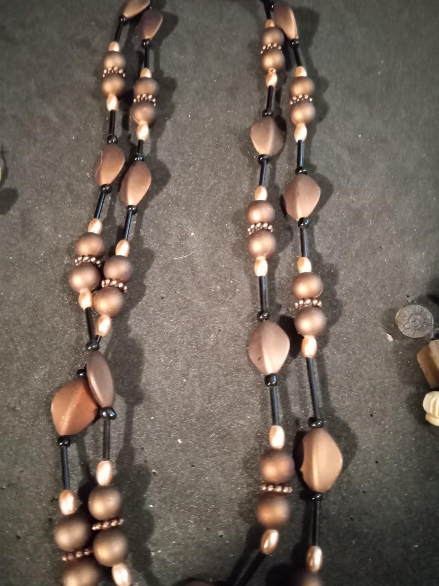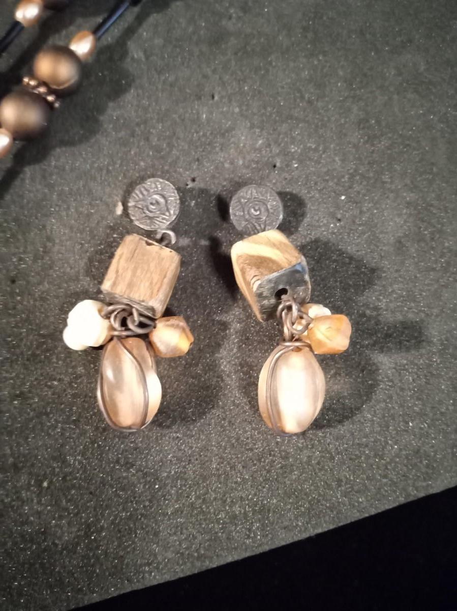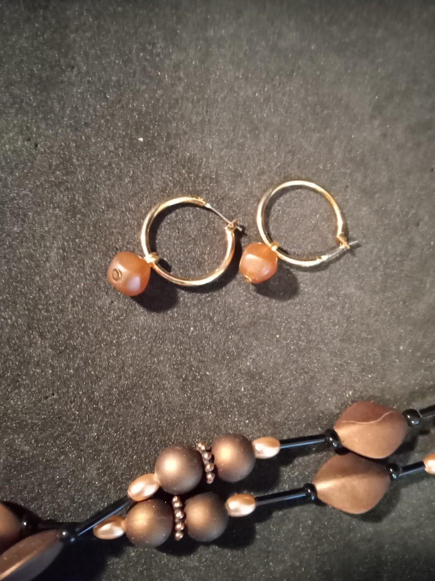 LONG BEADED NECKLACE AND 2 PAIRS OF PIERCED EARRINGS