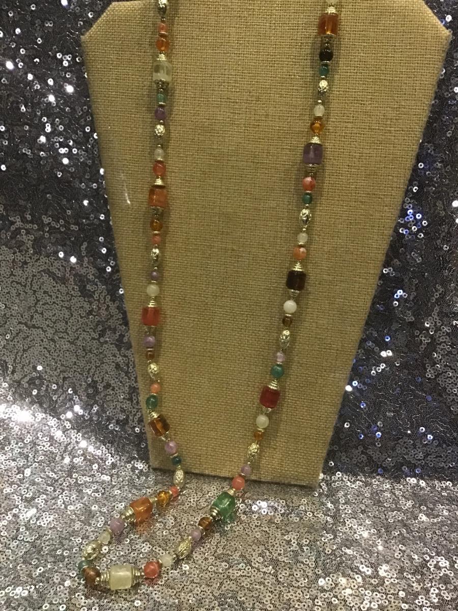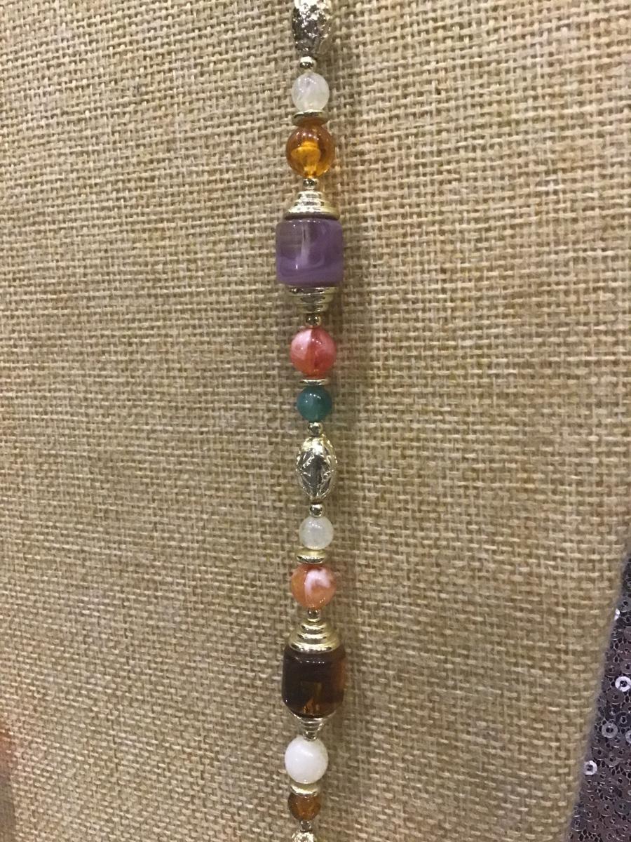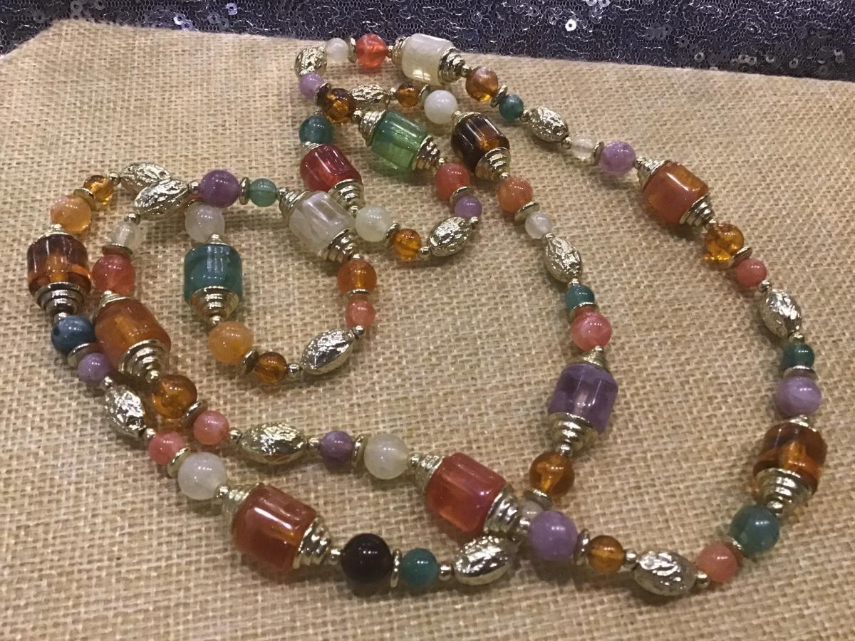 Long Beaded Necklace Faux Gemstone Faux Amber Plastic Flapper Beads