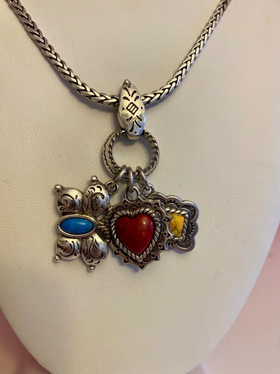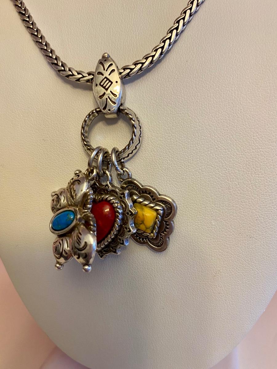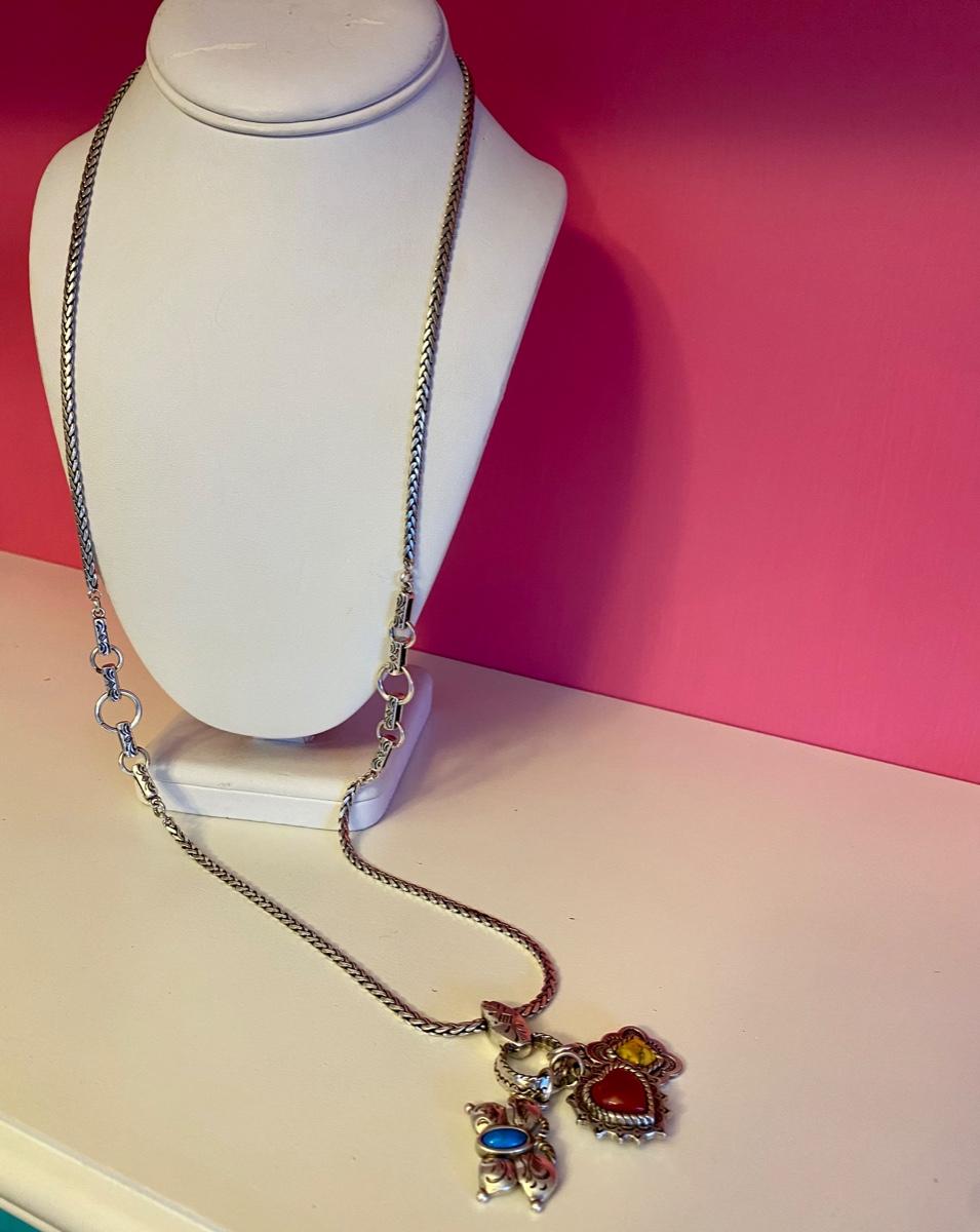 Long Brighton Necklace with Blue, Red and Yellow Stone Charms
