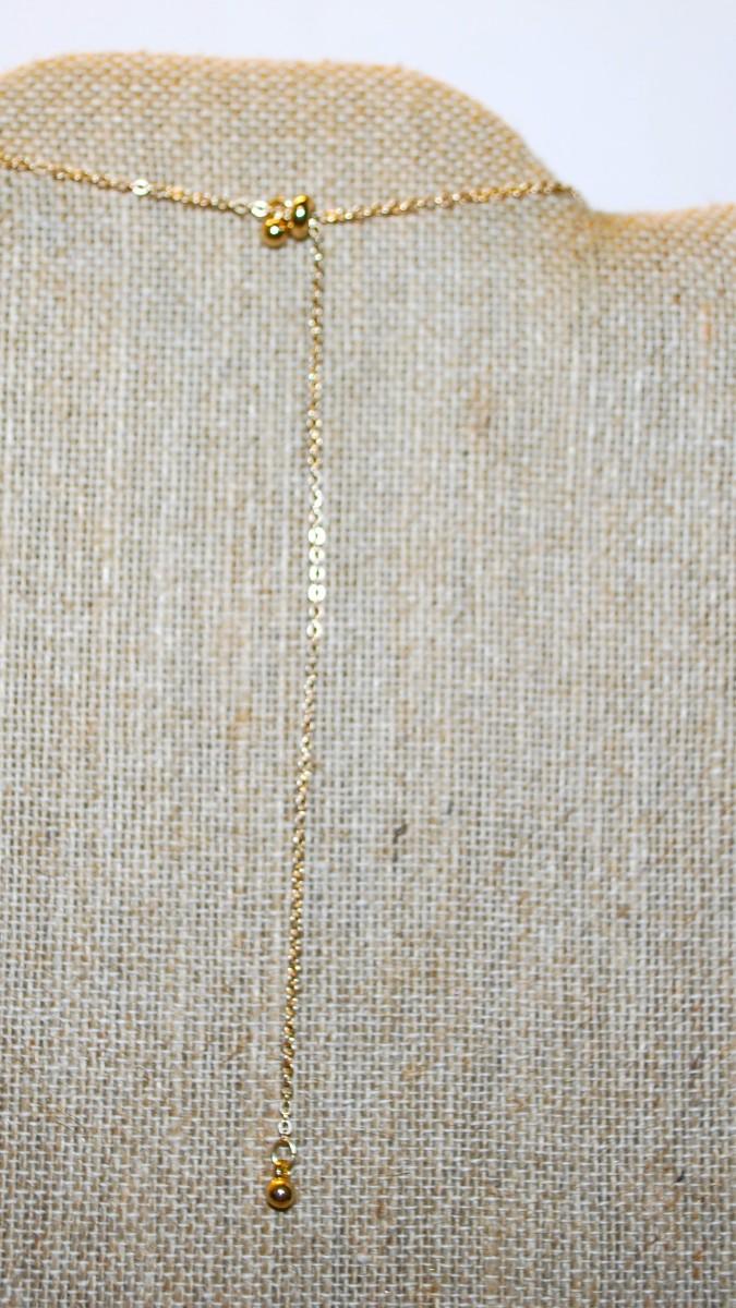 Long Chain (30") Charm Style Necklace with Glittery Quarter Moon, Lock & Key, Pink Cloth Flower and Oval Stone