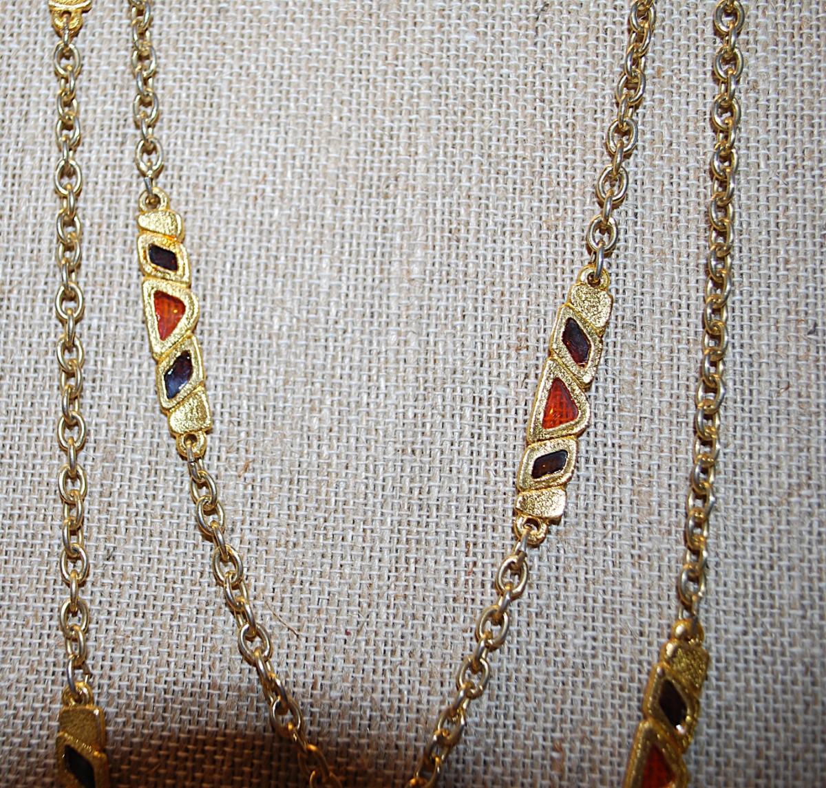 Long Colorful Wrap-Around Necklace Chain with Amber & Red Glass Stone Sections with Barrel Lock Closure 44" L