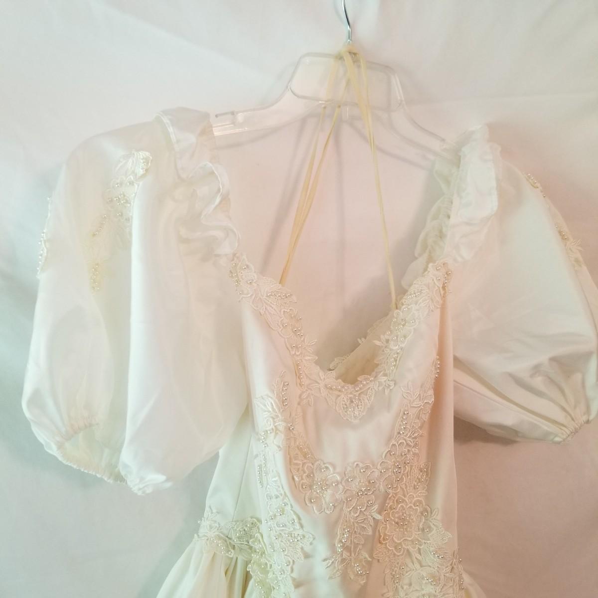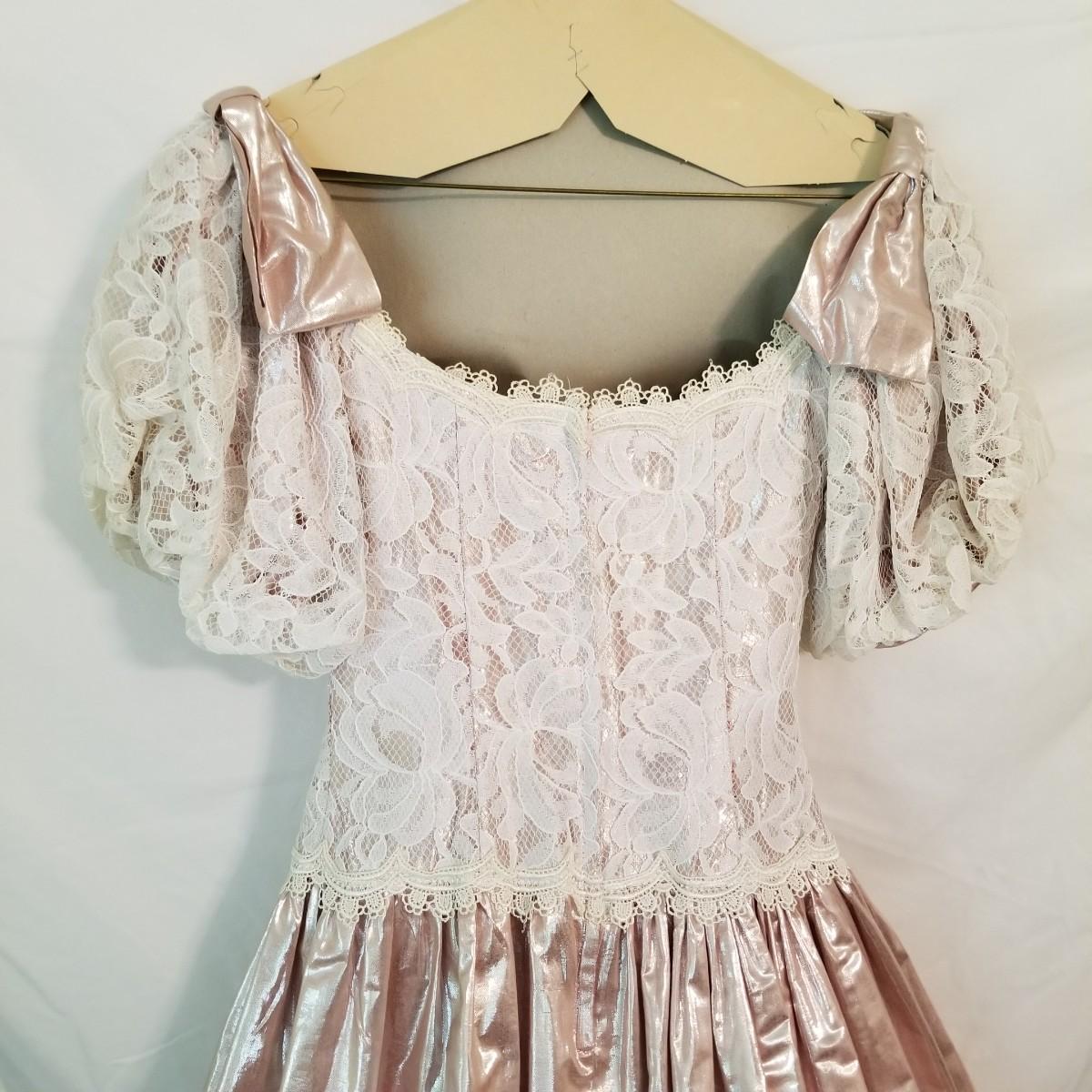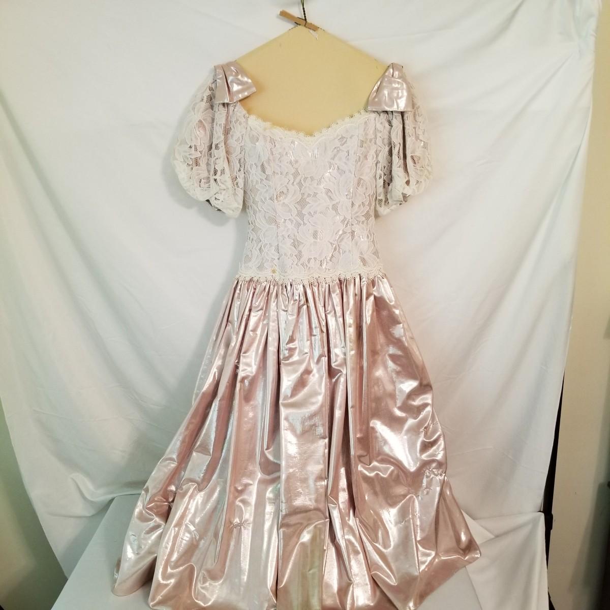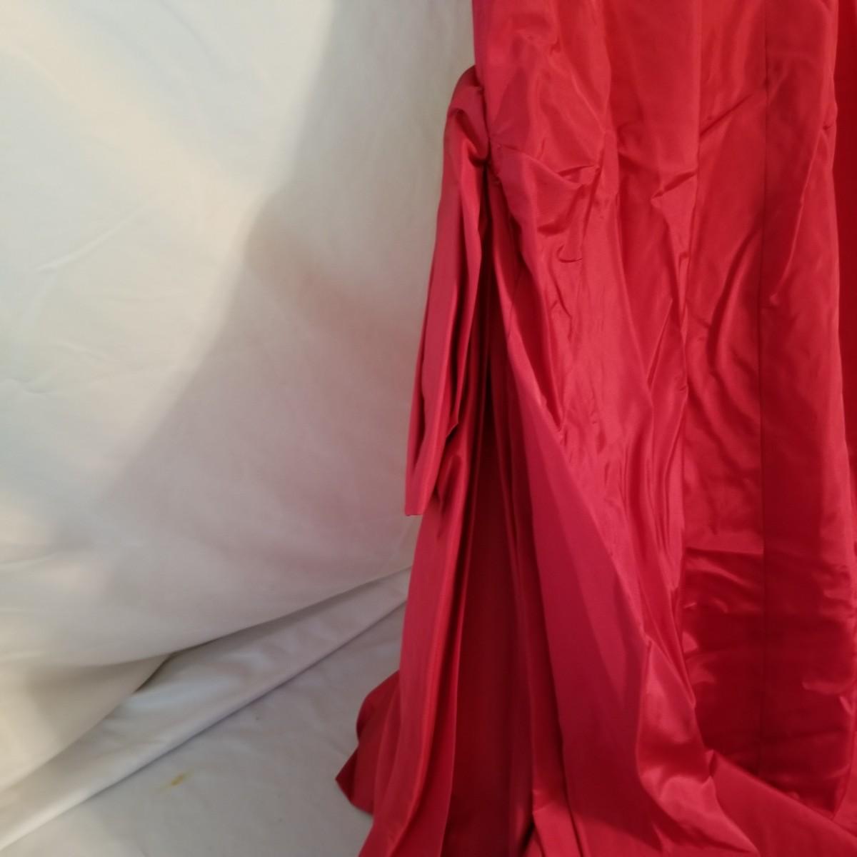 Eighteen pieces of elegance. Evening gowns, some with capes or sleeveless. Linen, rayon, acetate and more. One muslin hoop skirt and a set of petticoats. Sizes are mostly 18W, but a couple of smaller items down to 6. All longer styles, most floor length. Many items appear custom made. Most items in good condition. Local pickup only.