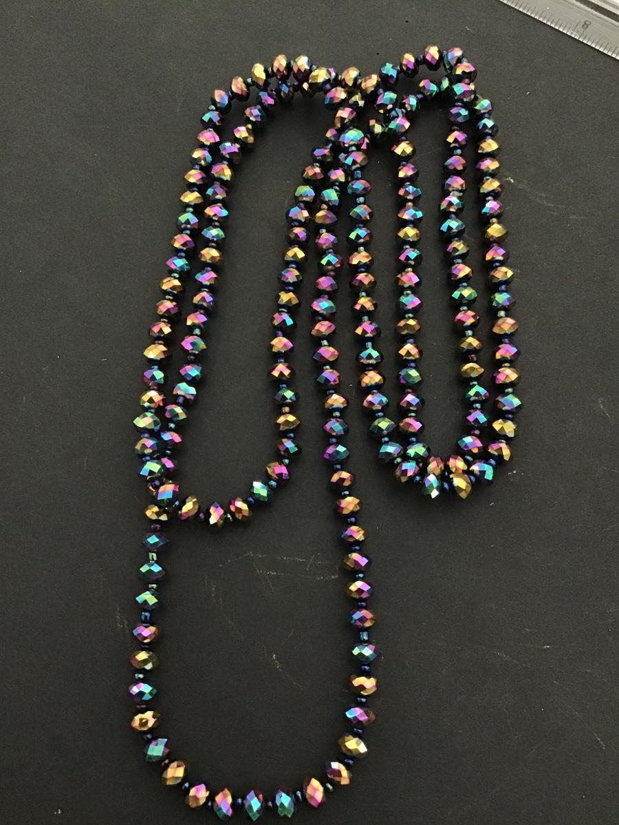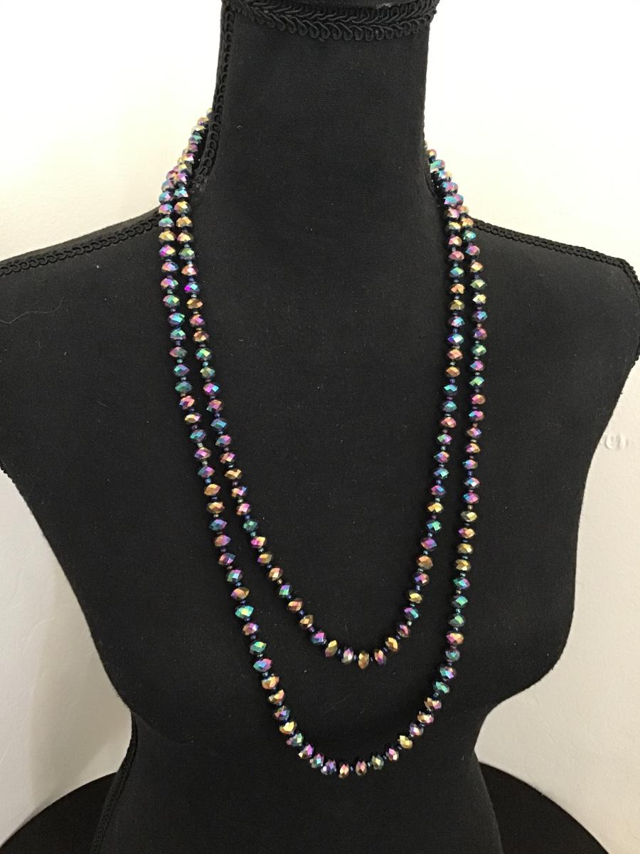 Long Faceted Iridescent Glass Rondelle Beaded Necklace
