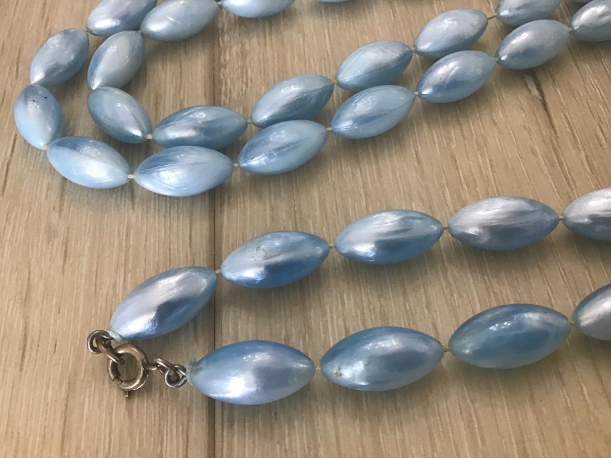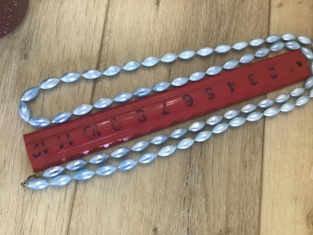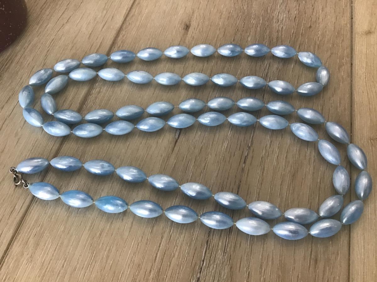 Long Faux Shiney Blue Flapper Style Necklace