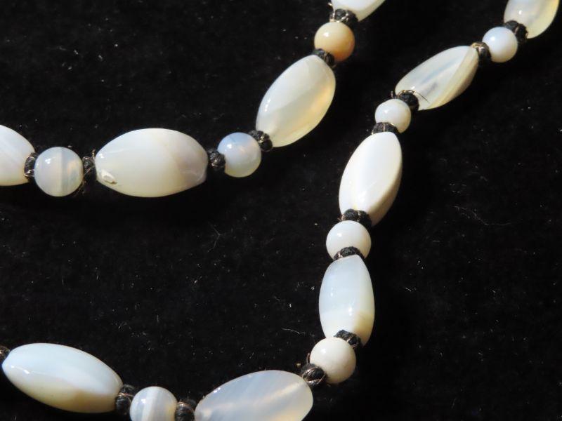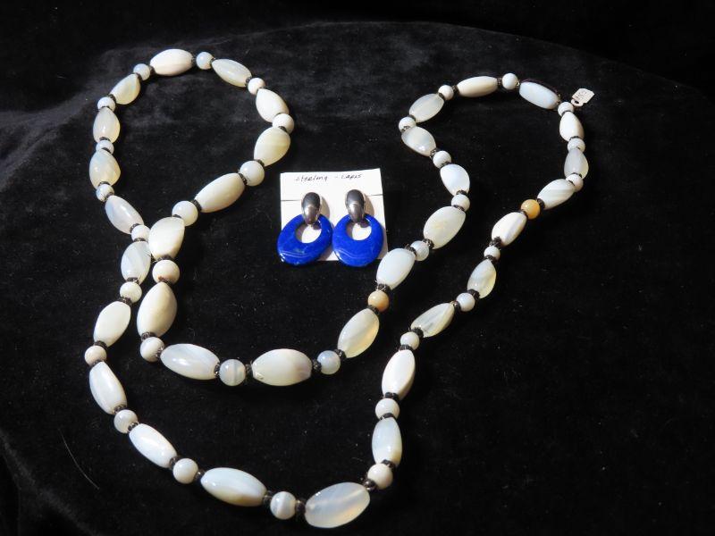 Long glass beads necklace and sterling Lapis earrings