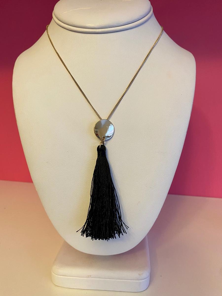 Long Gold Necklace with Black Tassel