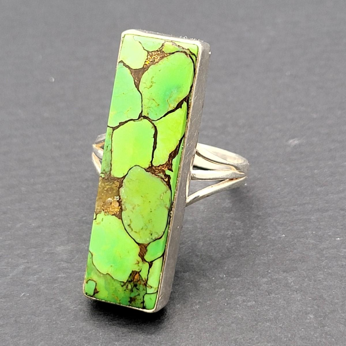Southwest Long Green Turquoise Ring 7.3gr