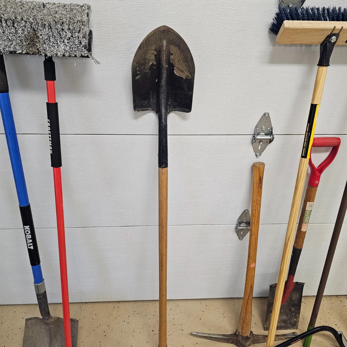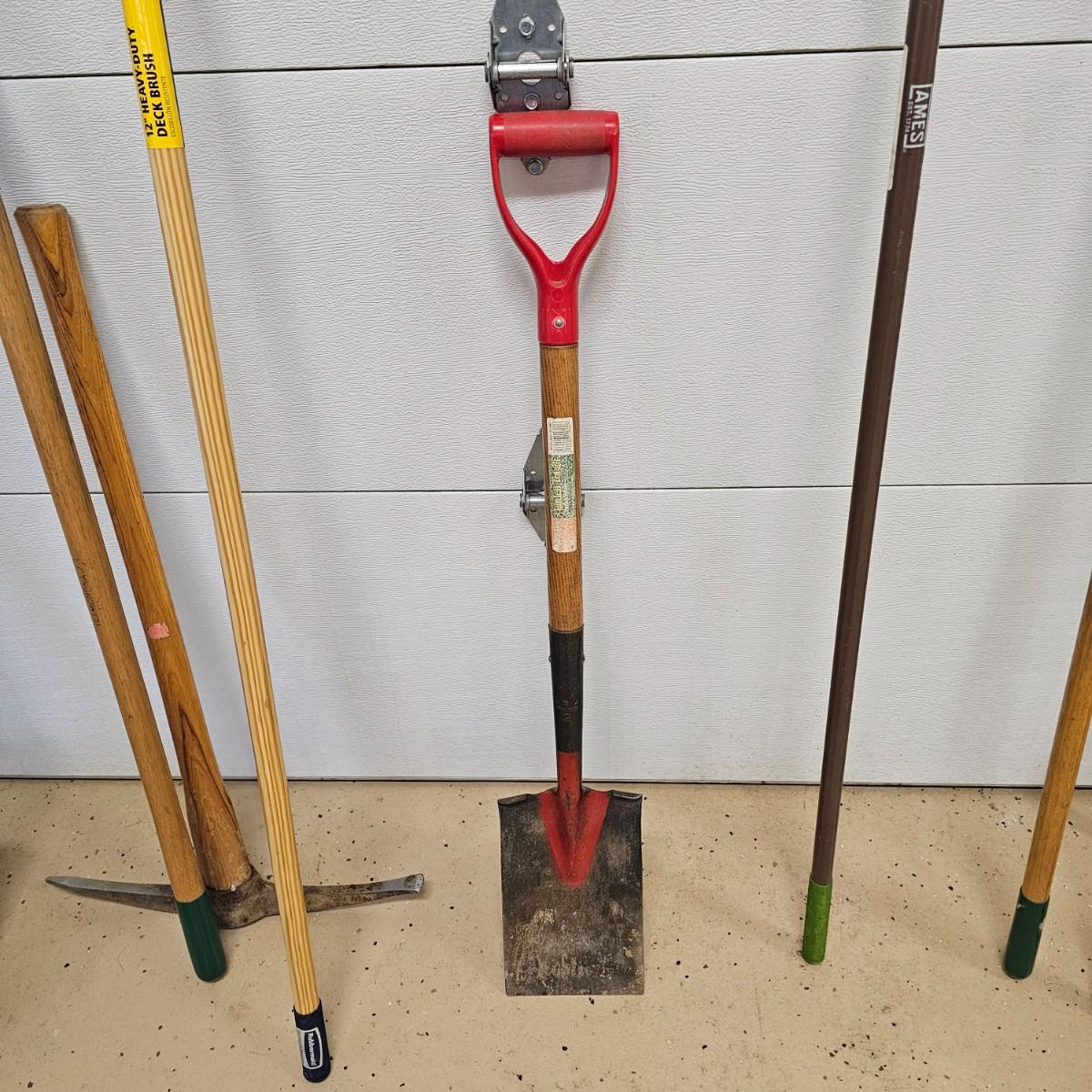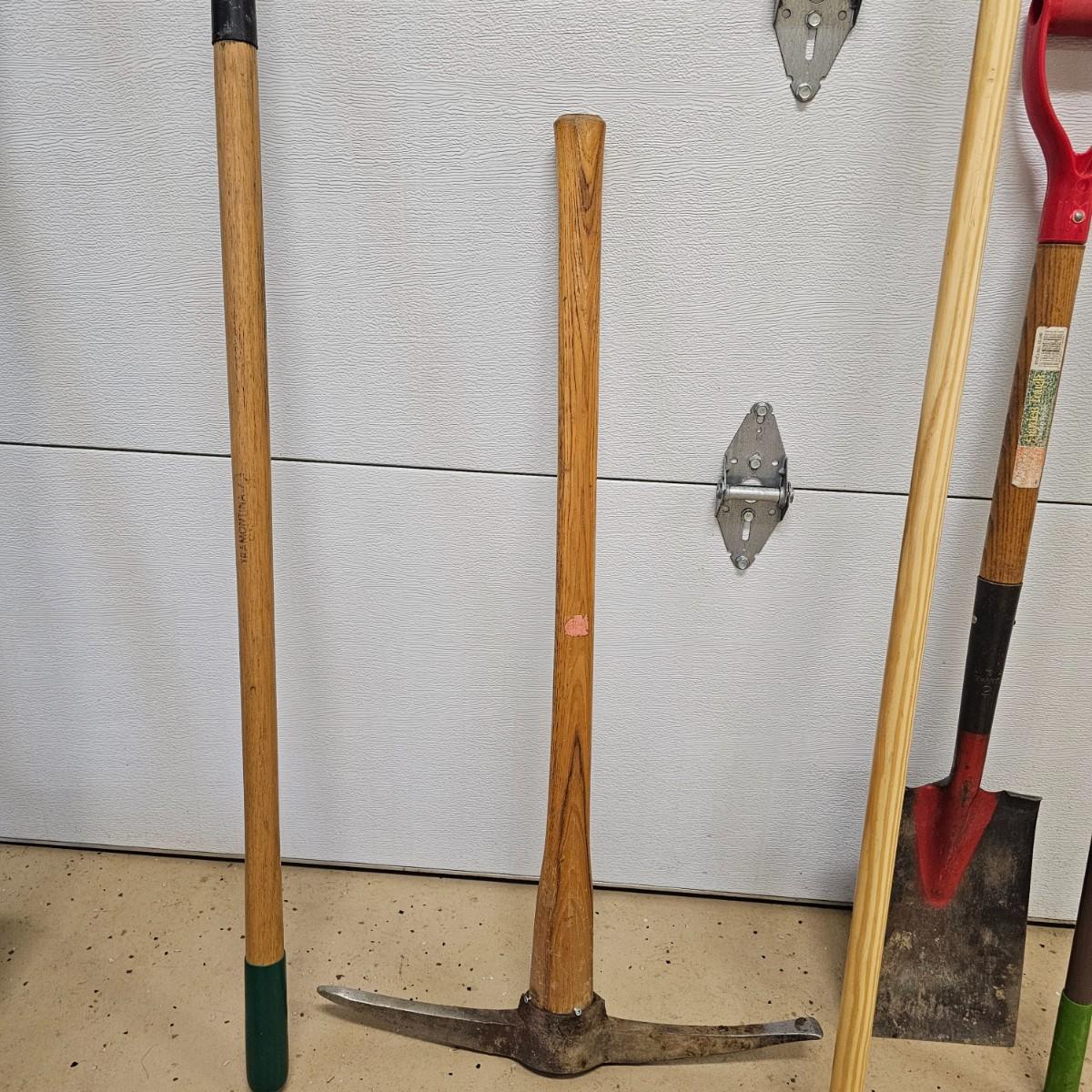 Rakes, shovels, brooms, trimmers, more. Square and round point shovels. Leaf and garden rakes. Long handle loppers. See photos for details. Local pickup only.