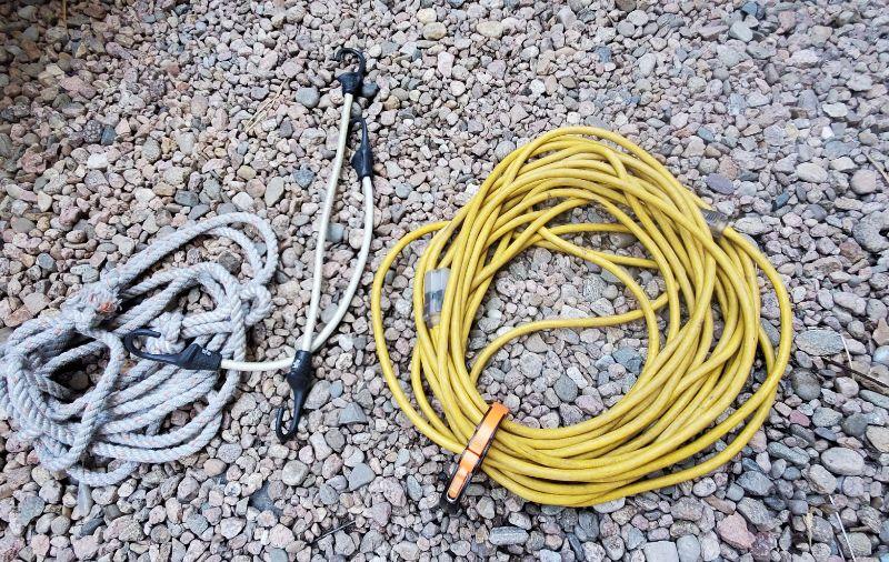 Long Heavy Duty Outdoor Extension Cord, Bungees, and Rope