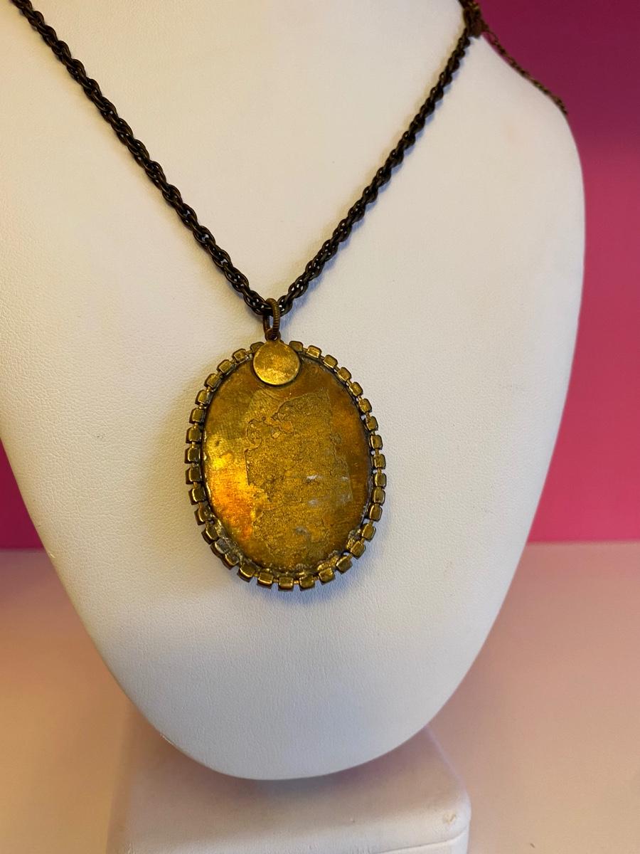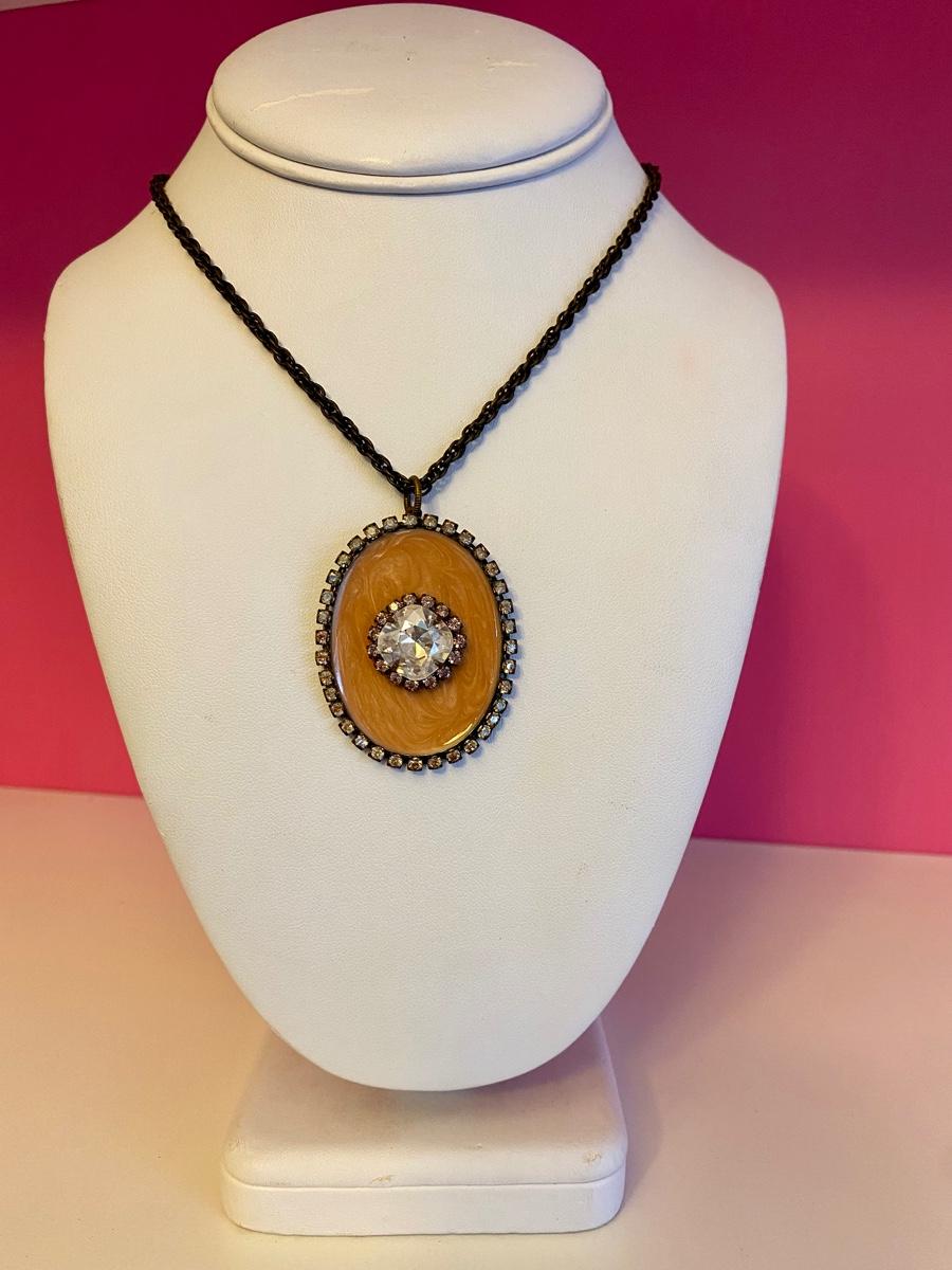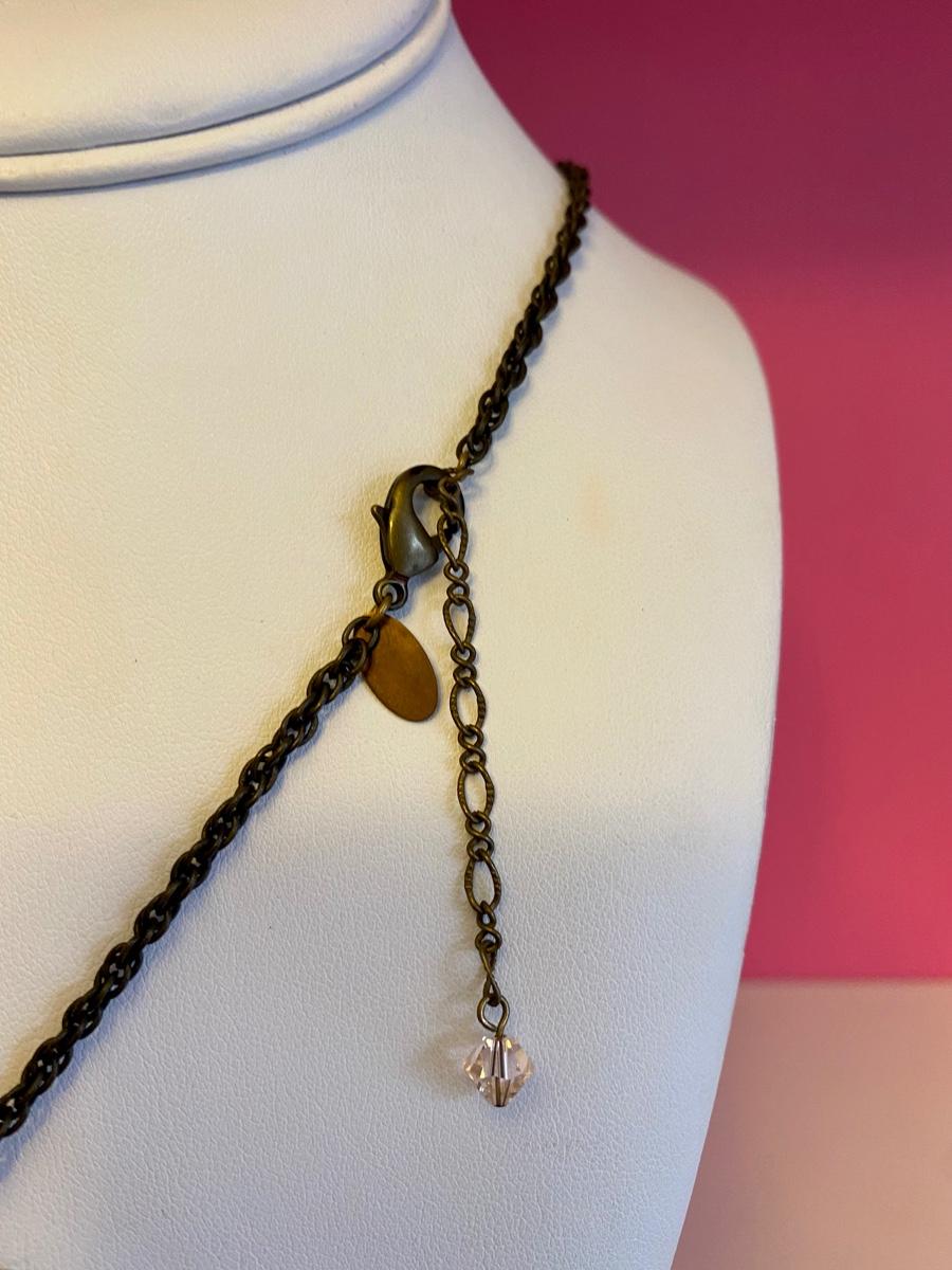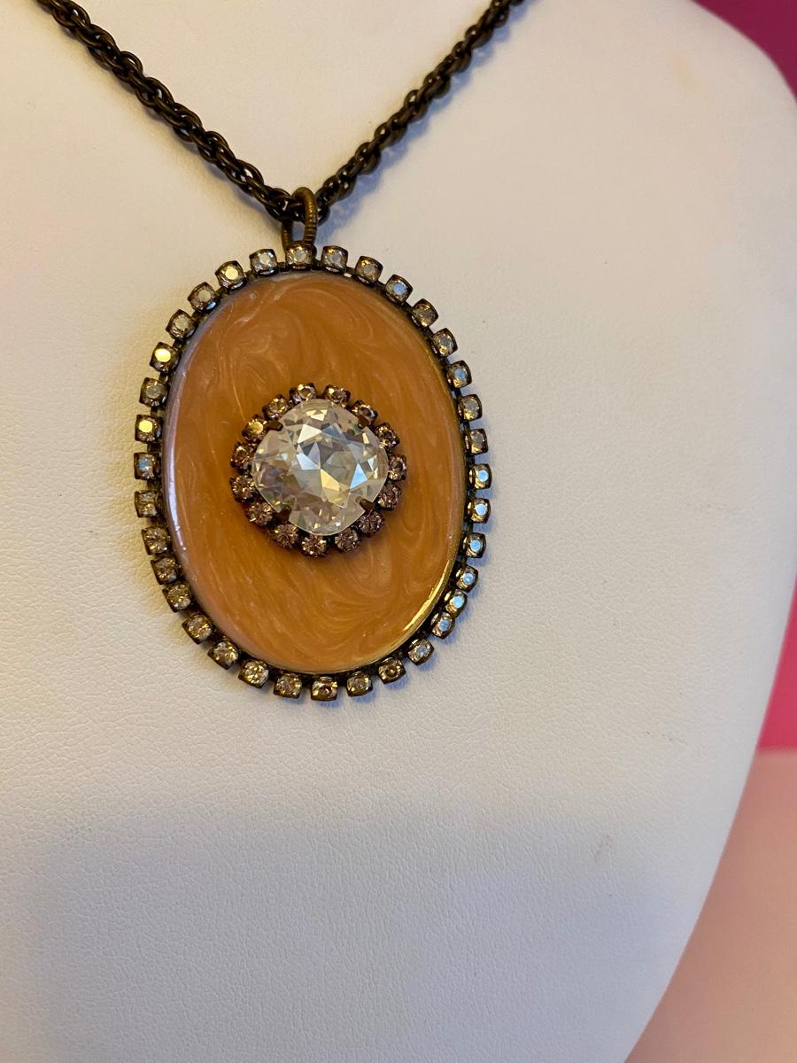Long Jewel and Brass Pendant Necklace