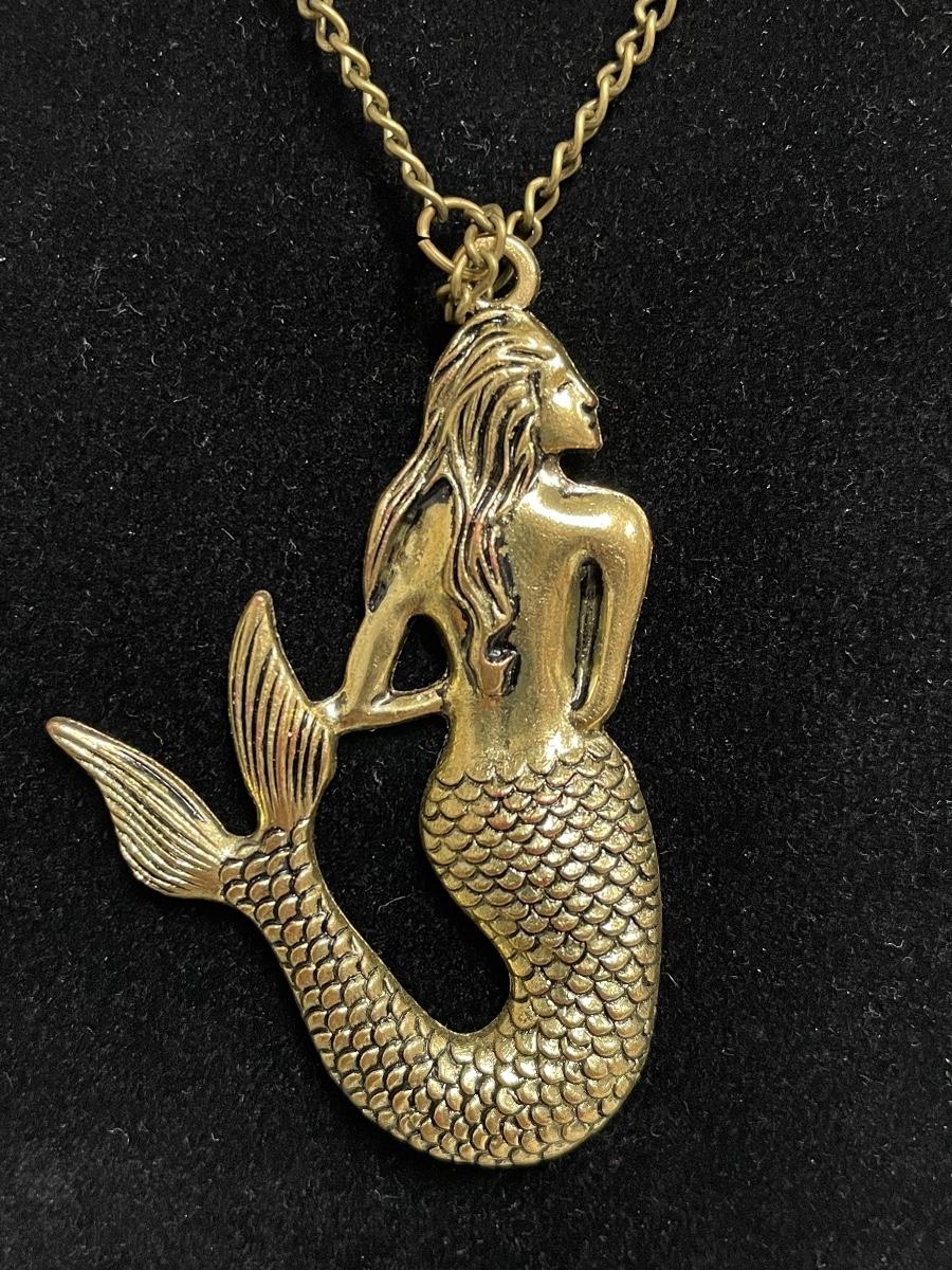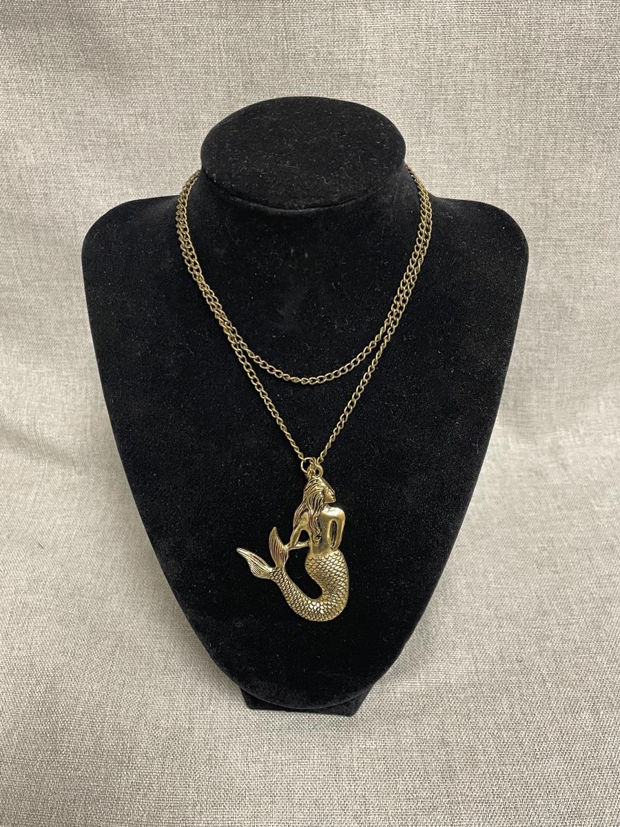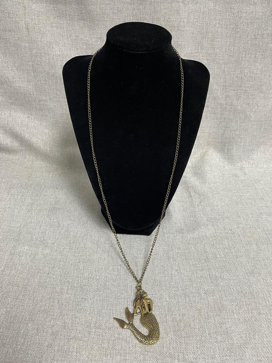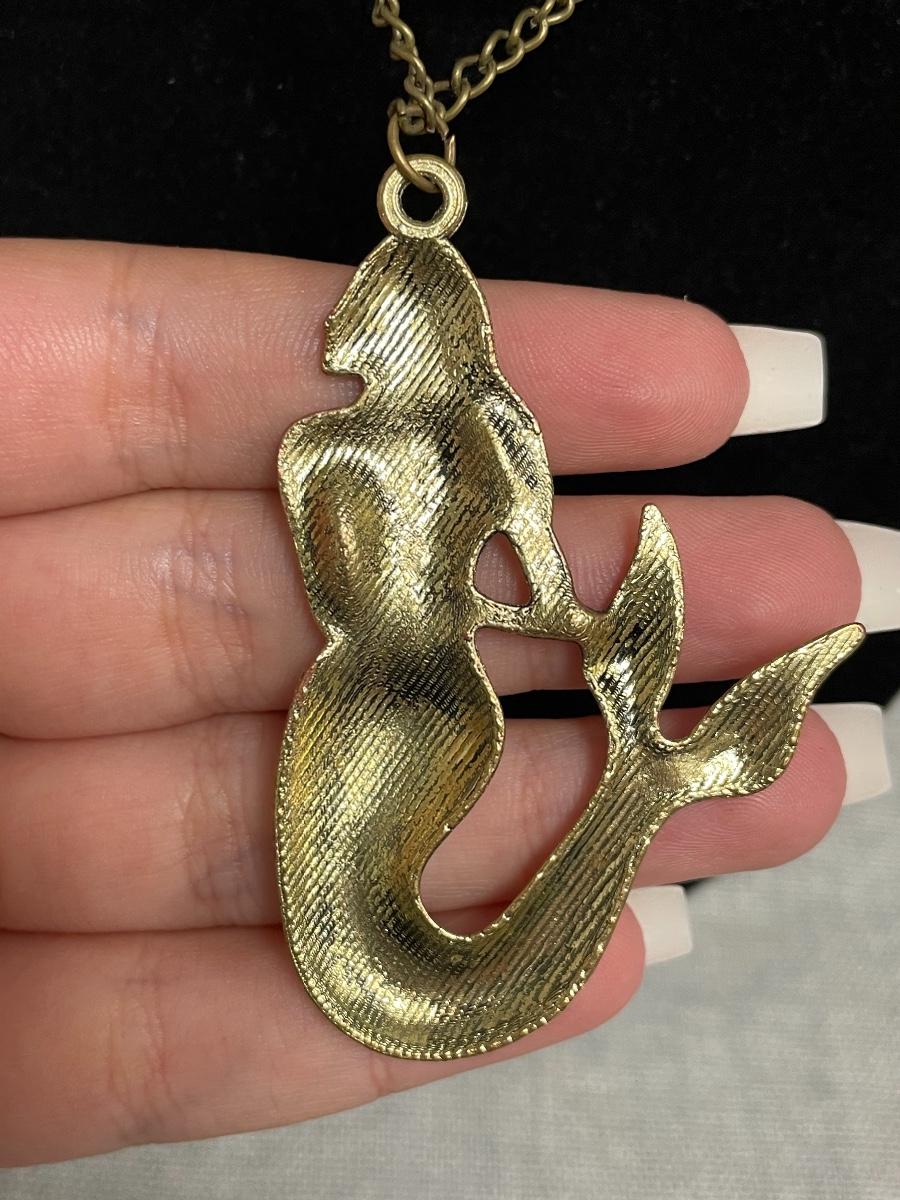 Item is in decent condition. The chain on this necklace is very long. The mermaid charm is about two inches tall.