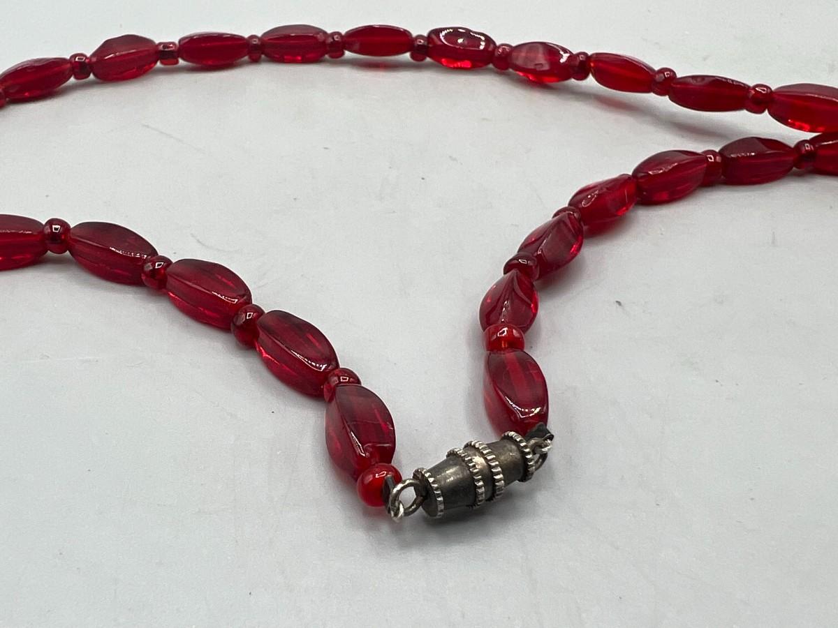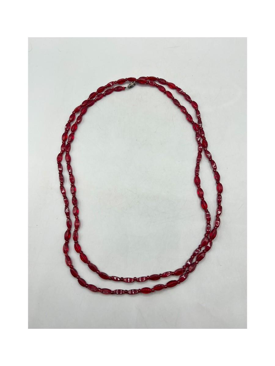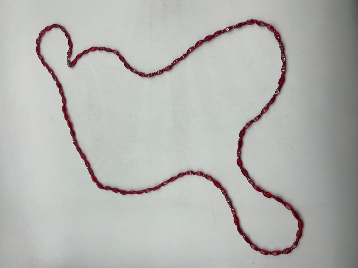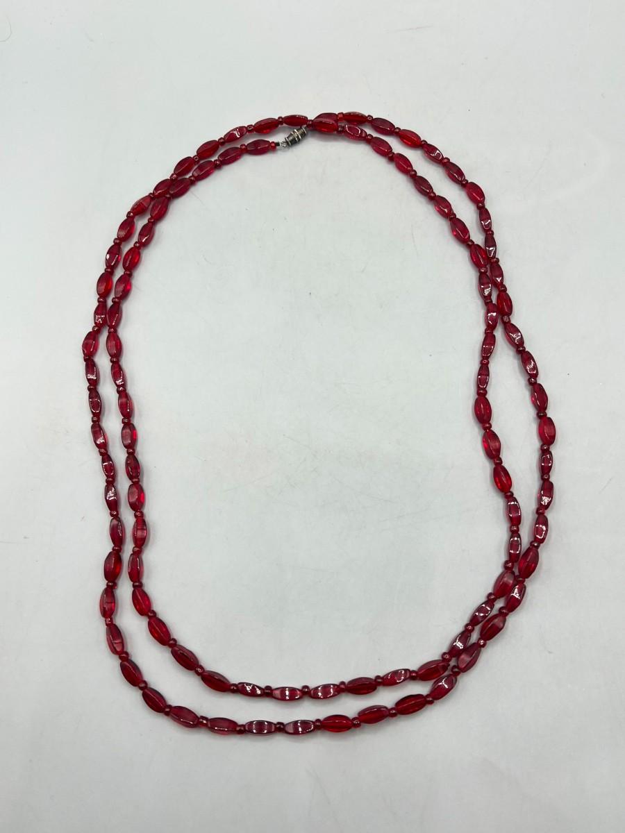 Long Red Beaded Fashionable Costume Jewelry Dress Up Necklace