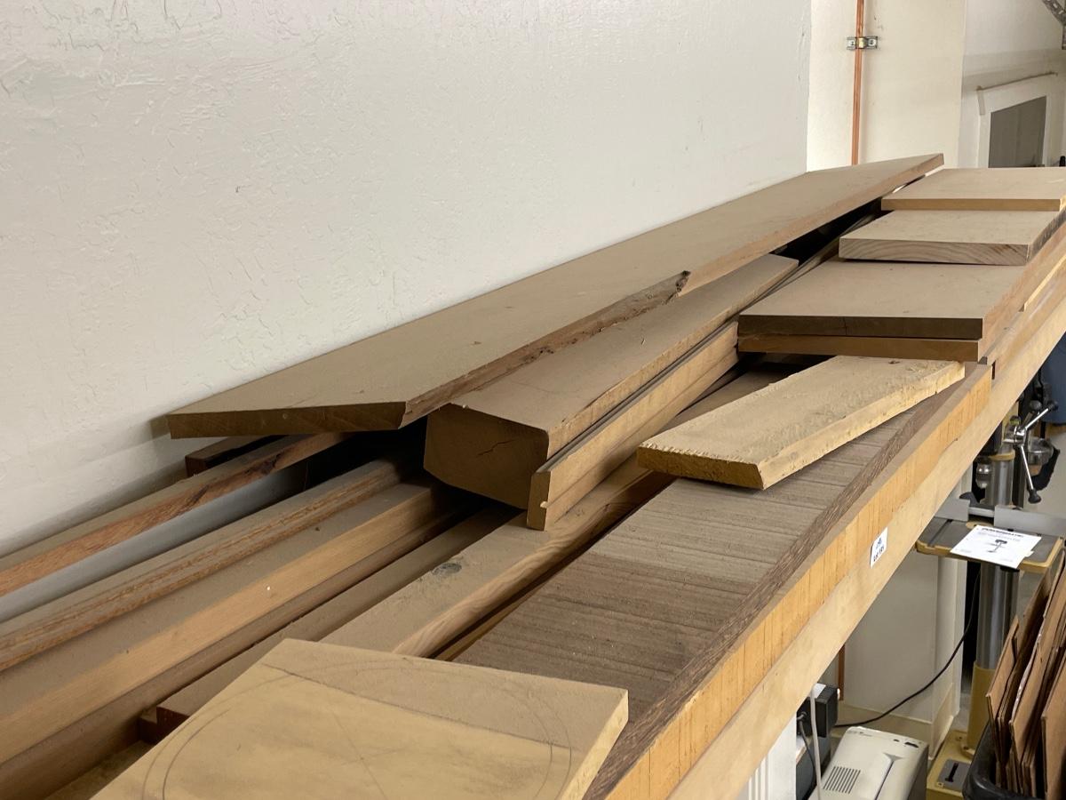 hardwoods in various lengths/sizes/shapes. The entire shelf full all the way across