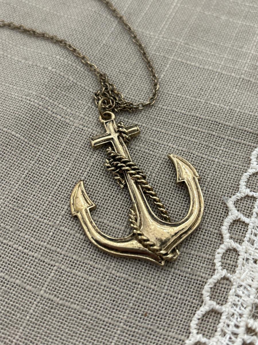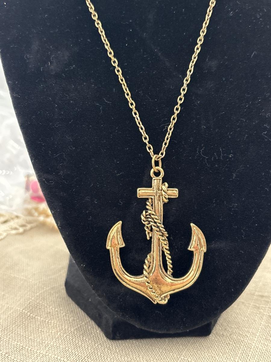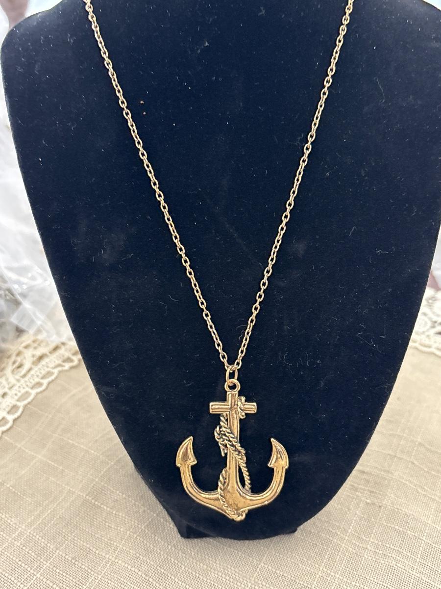 Long Silver Chain tone Necklace with Extra Large Anchor