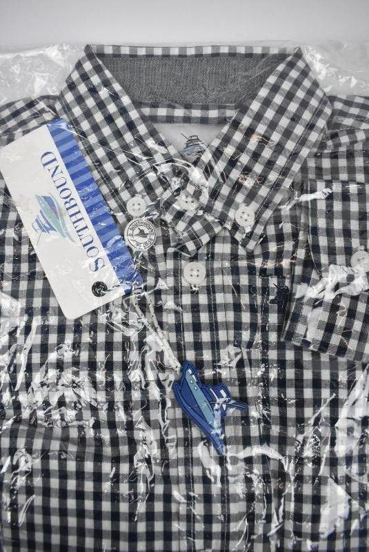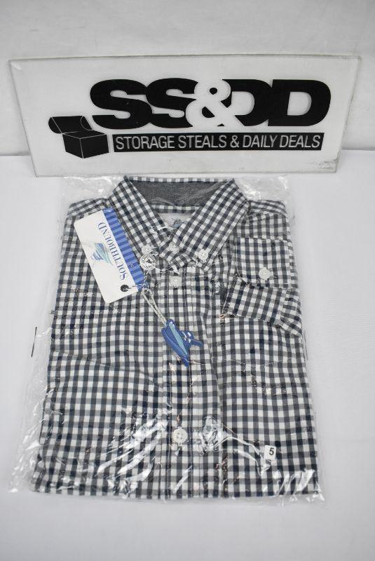 Long Sleeve Button Up Dress Shirt, Navy & White Gingham Plaid, Boys Size 5 by Southbound - New
