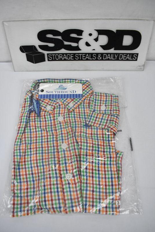 Long Sleeve Button Up Dress Shirt, Colorful Gingham Plaid, Boys size 3 by Southbound - New
