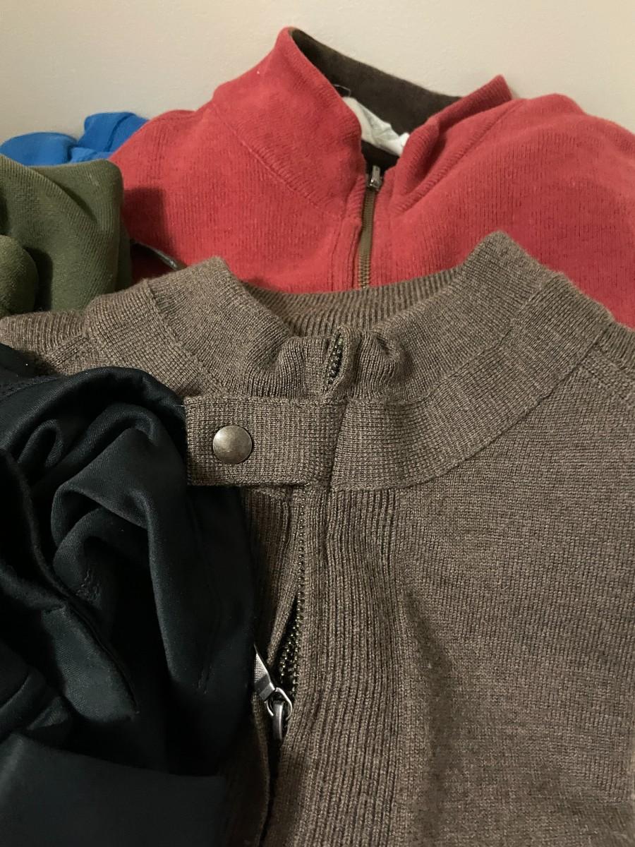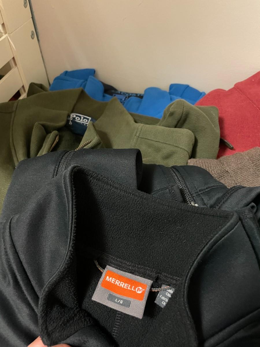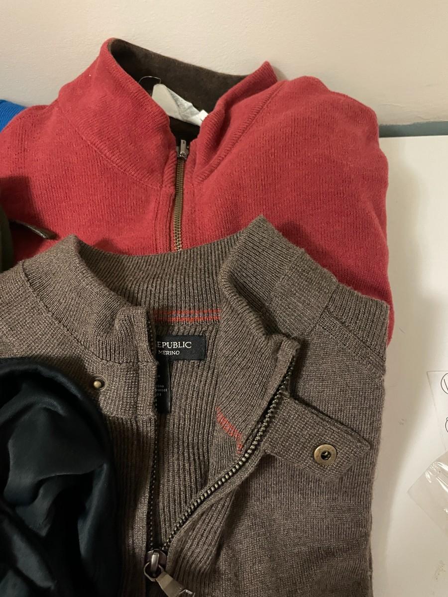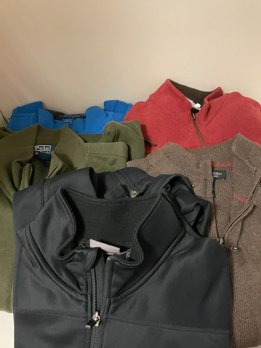5 Assorted Long Sleeve Shirts and 1/4 Zip Sweaters. All Size Large