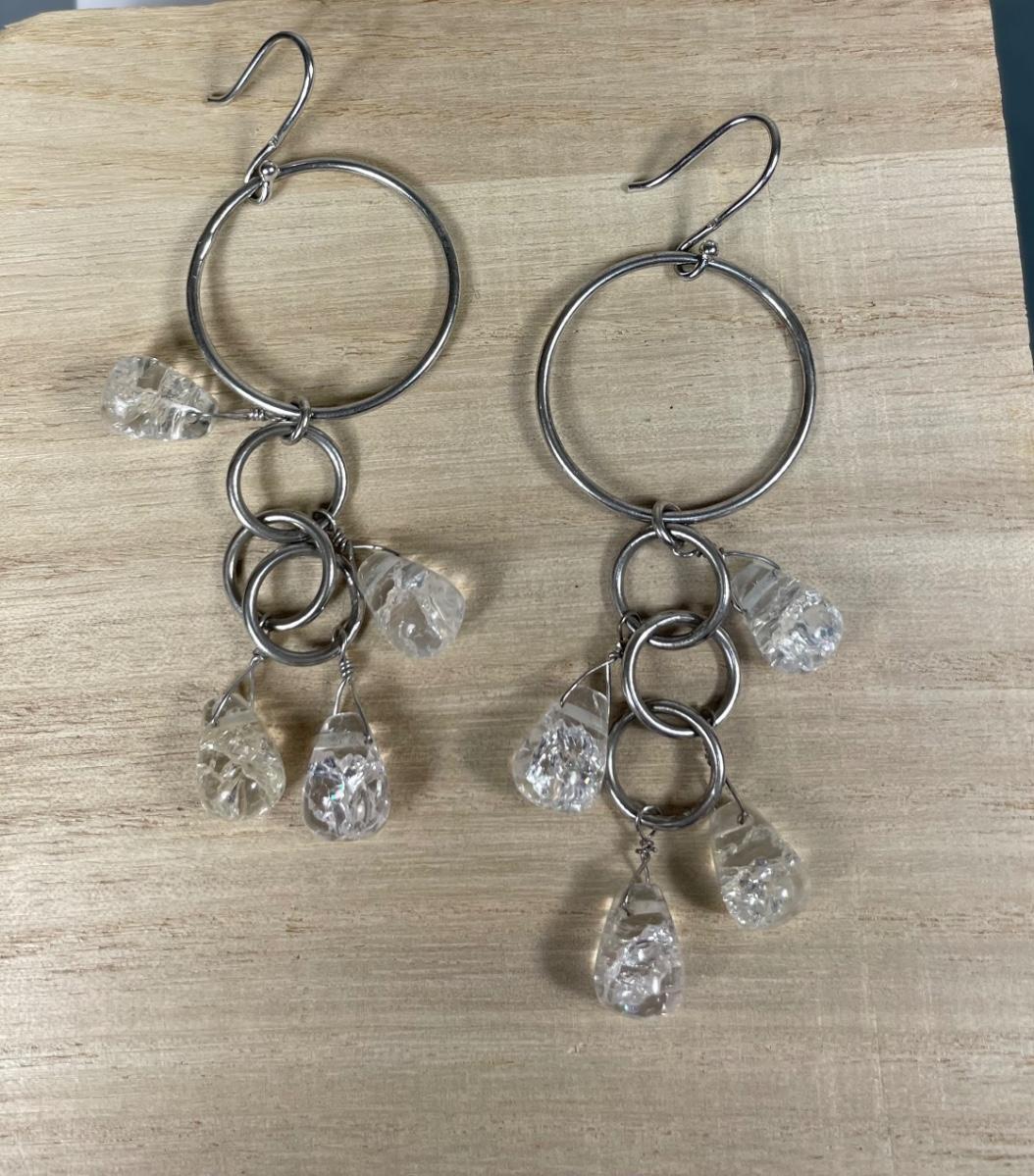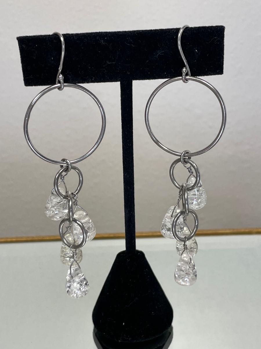 Long Sterling and rock crystal drop earrings