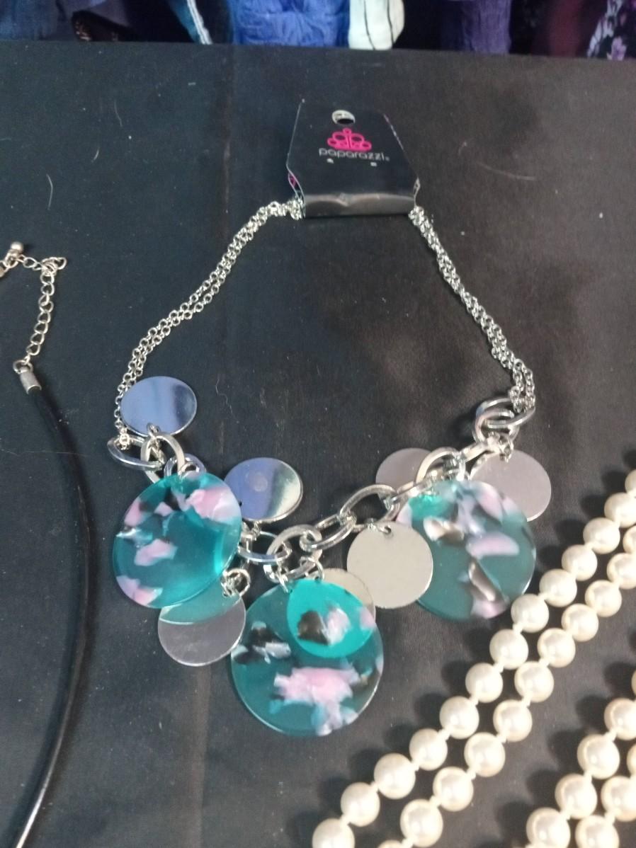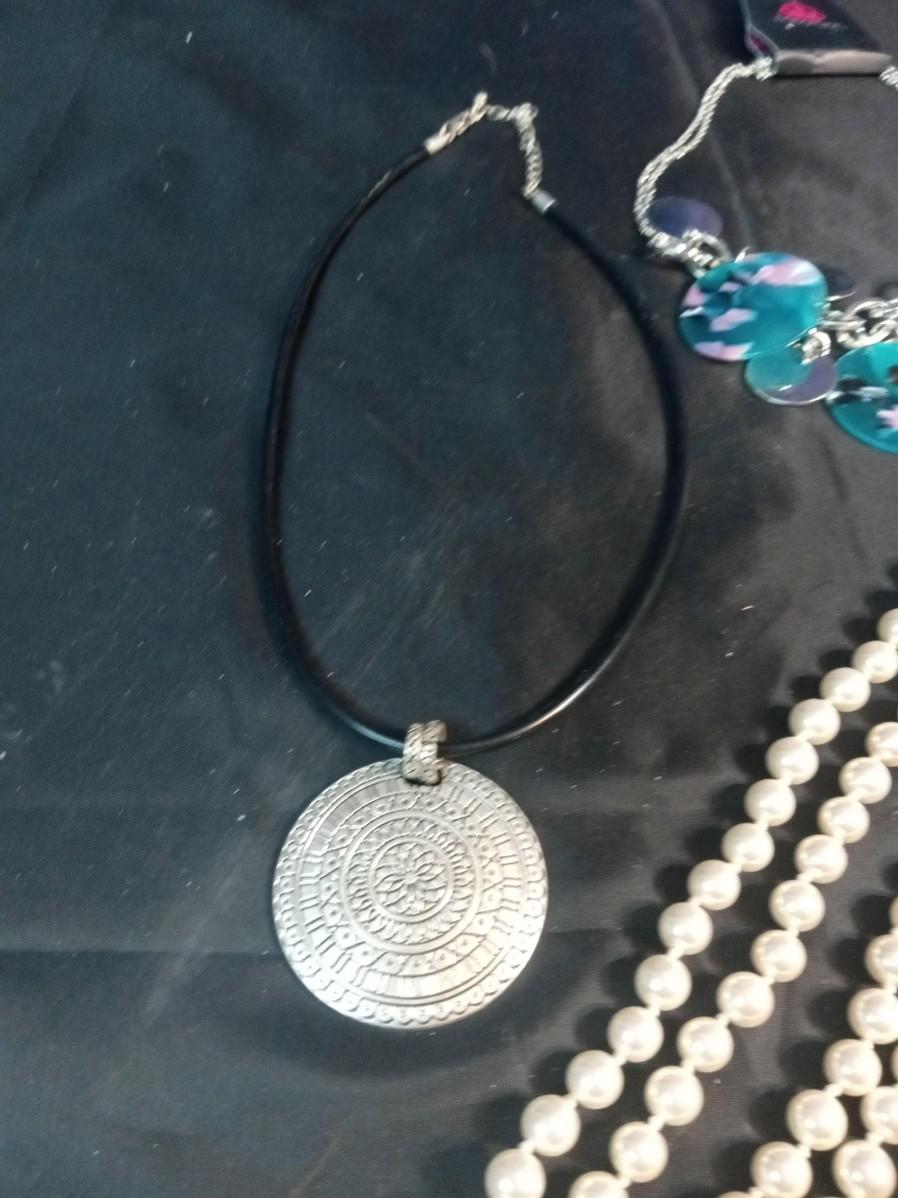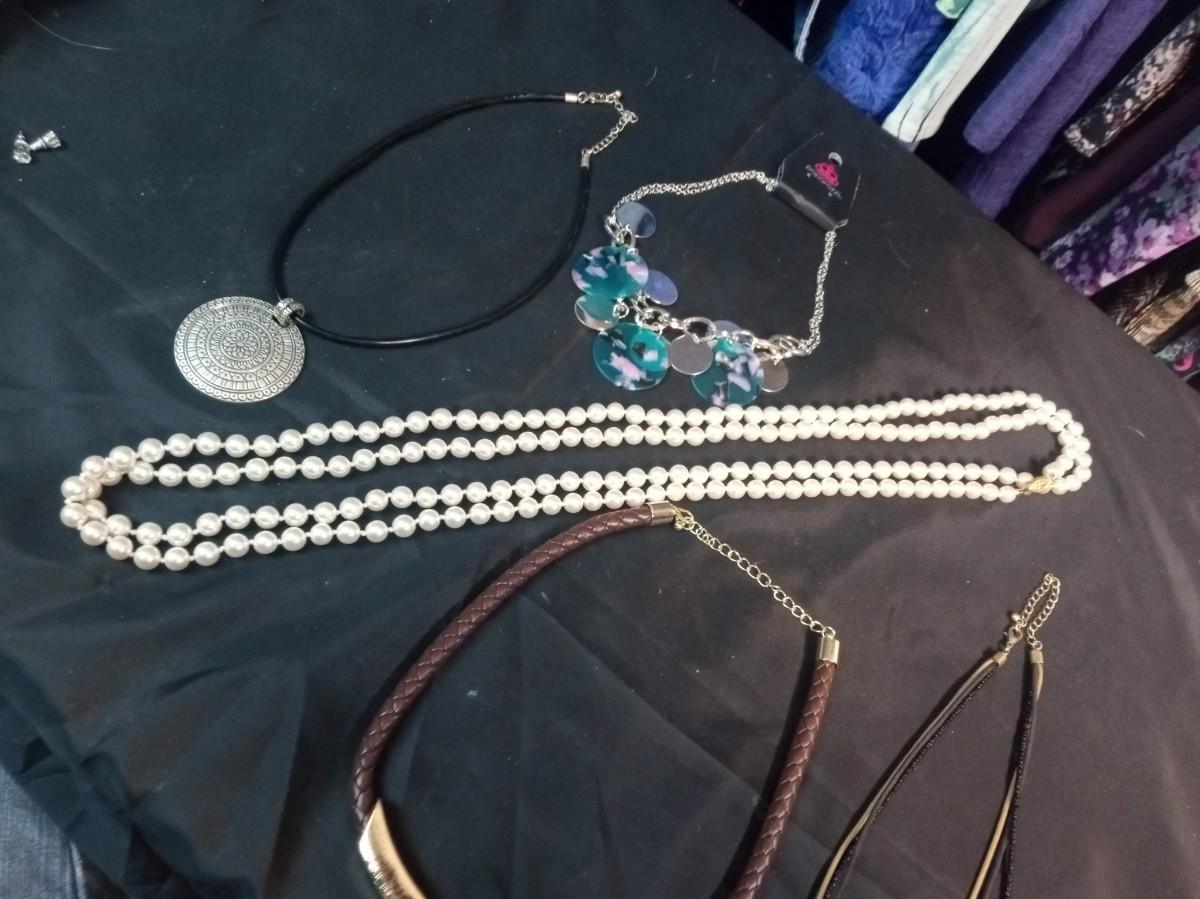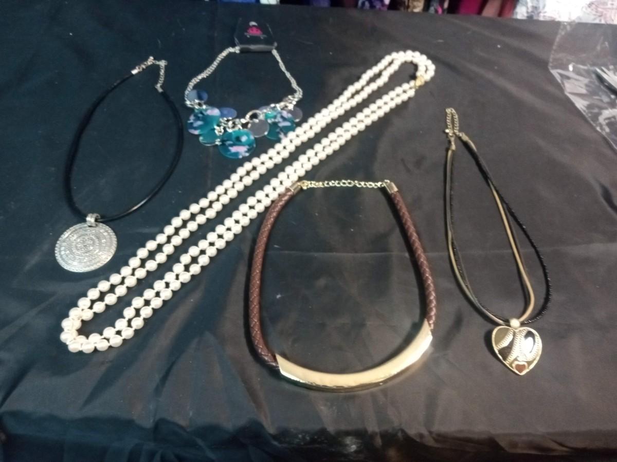 LONG STRING OF FAUX PEARLS AND OTHER FASHION JEWELRY