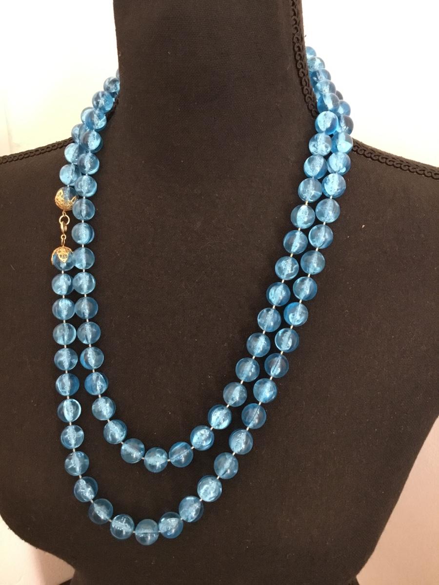 Long vintage, Lucite type plastic ball bead necklace