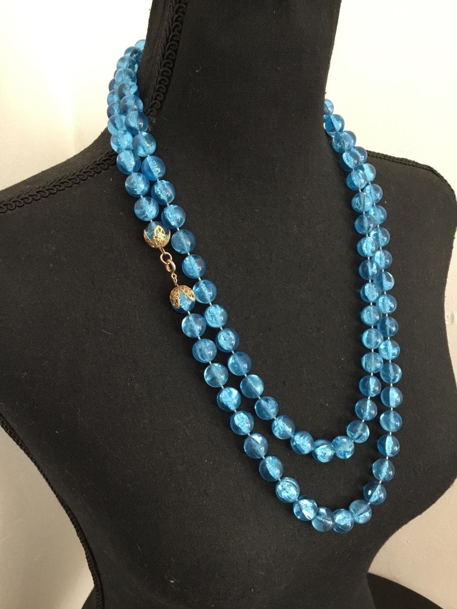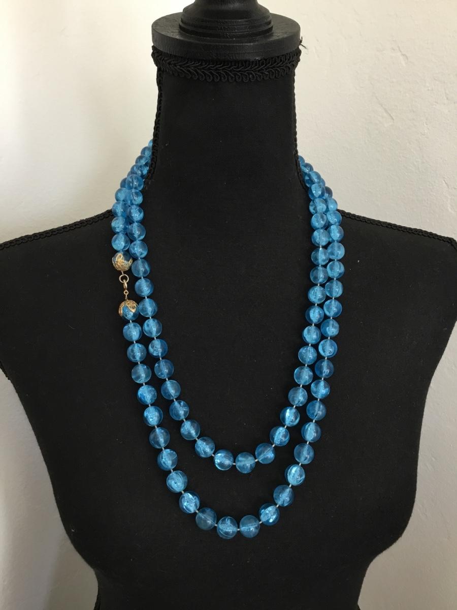 Long vintage, Lucite type plastic ball bead necklace
